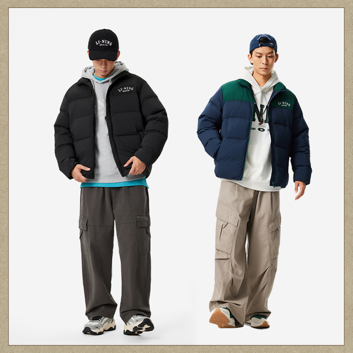 LINING Спортивная куртка пуховик, Deep Navy Blue/Sage Green 6 991₽