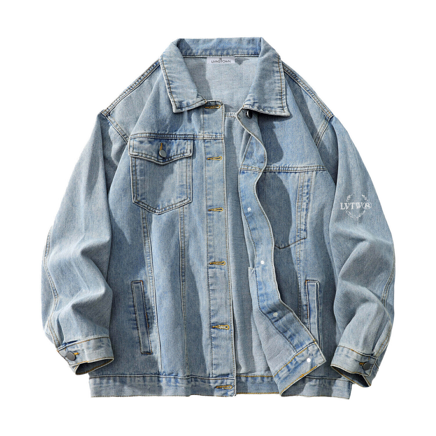 LIVINGTOWN Джинсовая куртка унисекс, Blue Coat+White Sweatshirt