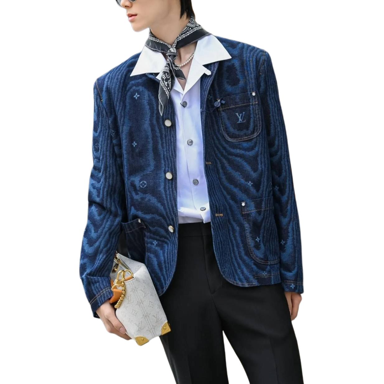 LOUIS VUITTON Стильная джинсовая куртка без воротника, Blue