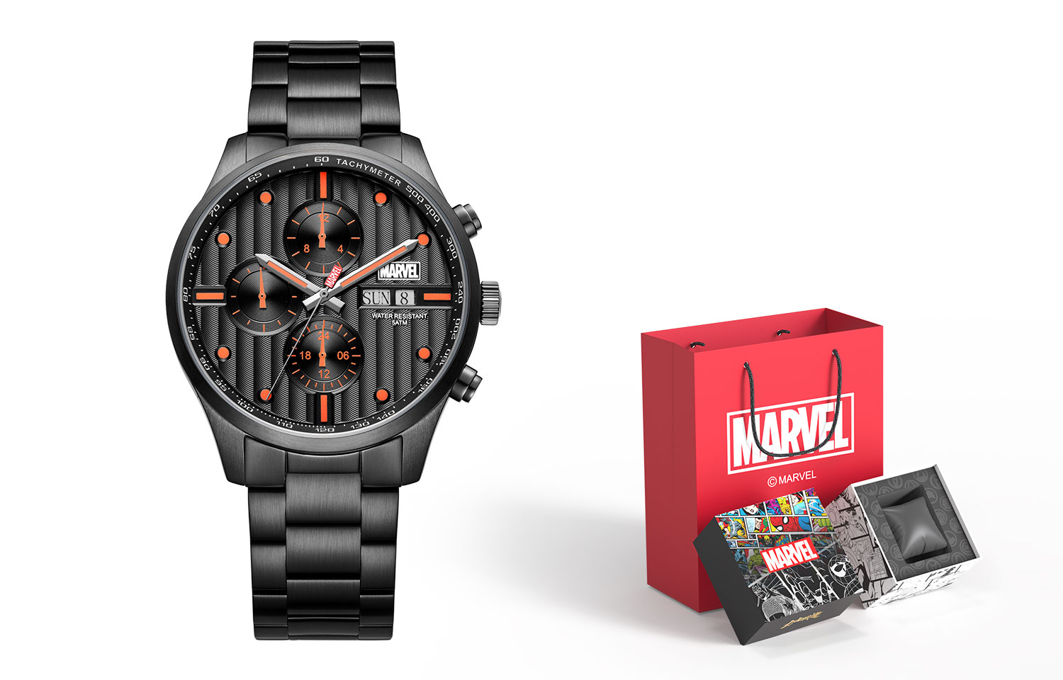 MARVEL Часы Heartstrings Collection Automatic Mechanical Movement Steel Strap Watch Men's Watch Black Dial
