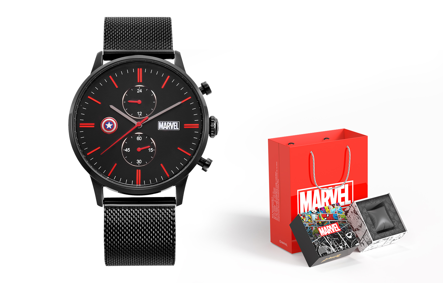 MARVEL Часы Heartstrings Collection Quartz Movement Metal Strap Watch Men's Watch Black Dial