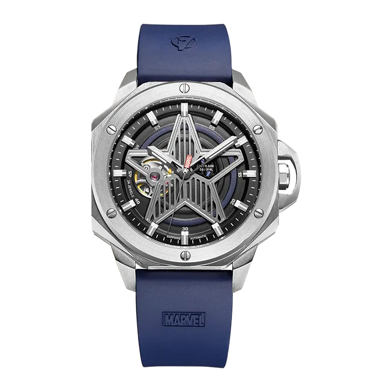 MARVEL Часы Hero Collection Automatic Mechanical Movement Rubber Band Strap Watch Men's Watch Black Dial