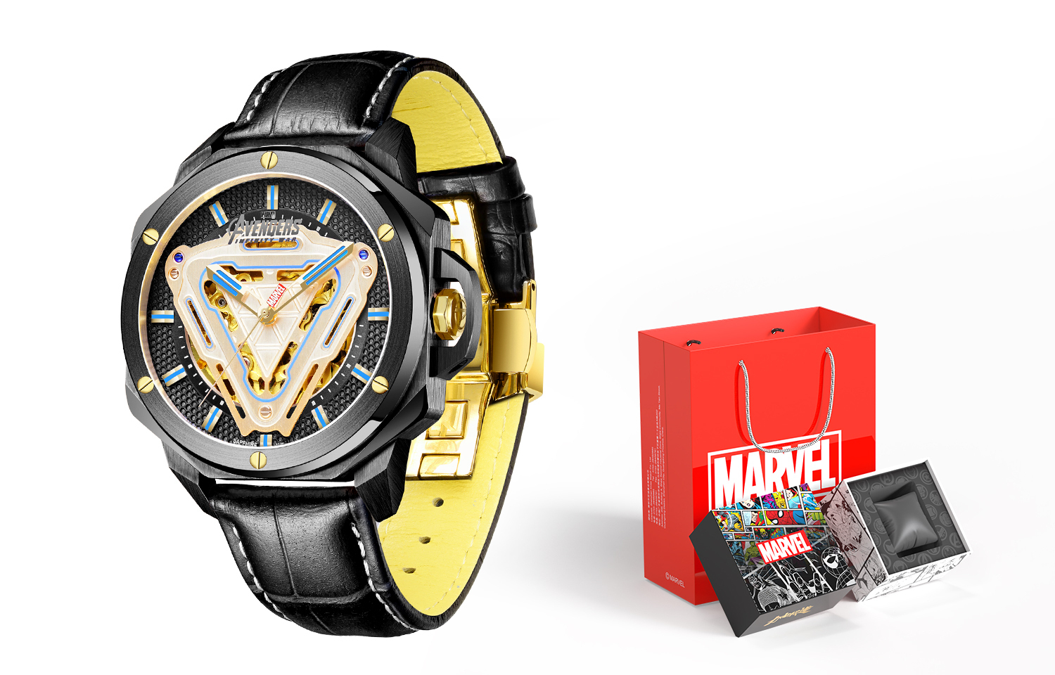 MARVEL Часы Hero Collection Automatic Mechanical Movement Rubber Band Strap Watch Men's Watch Black Dial