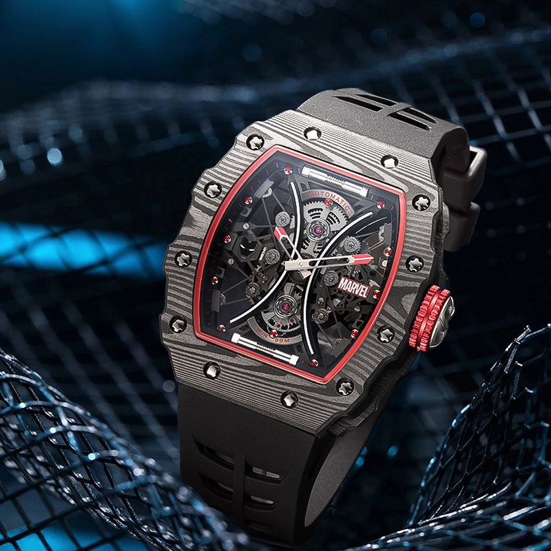 MARVEL Часы Hero Collection Mechanical Movement Rubber Strap Watch Men's Watch Black Dial