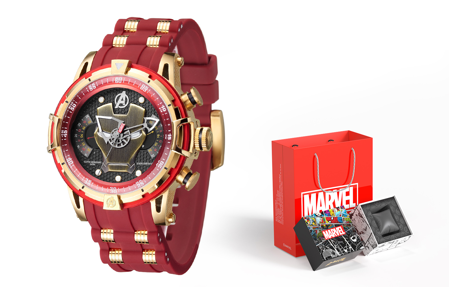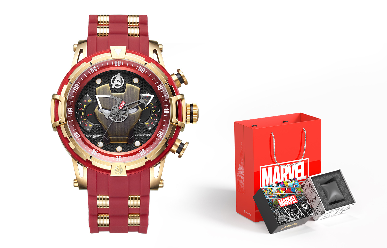 MARVEL Часы Iron Man Series Multifunction Quartz Movement Silicone Strap Watch Men's Watch Black Dial 11 274₽