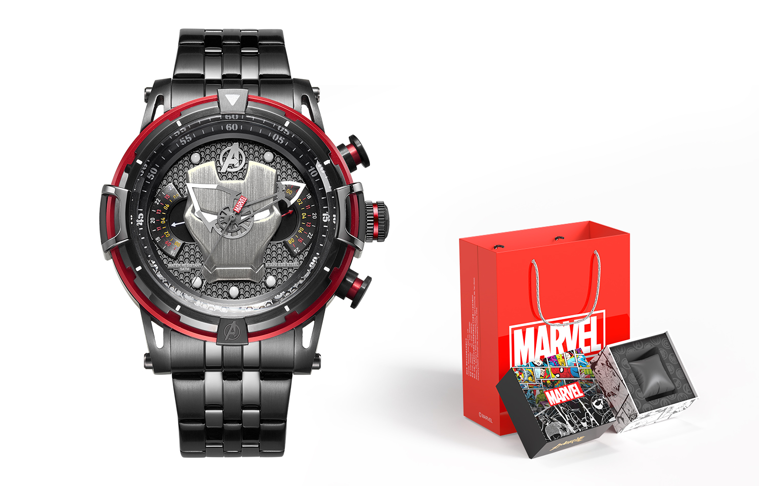 MARVEL Часы Iron Man Series Multifunction Quartz Movement Silicone Strap Watch Men's Watch Black Dial