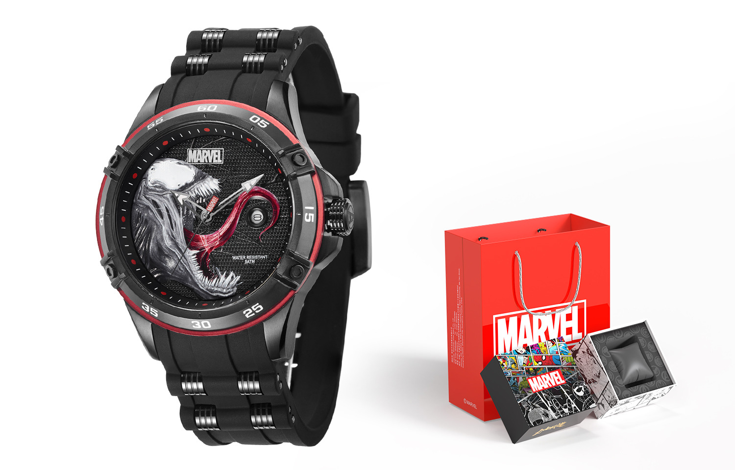 Модель: M-9110BBQ-3 Spider-Man[Quartz Movement, Rubber Band, Dual Time Zone, Waterproof]