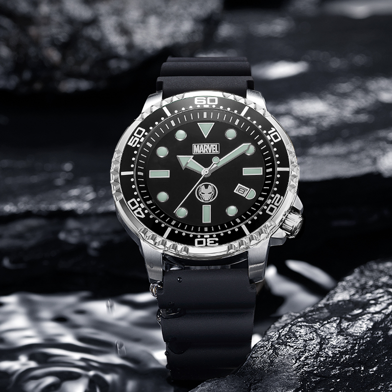 MARVEL Часы Iron Man Series Quartz Movement Silicone Strap Watch Men's Watch Black Dial M-9305B
