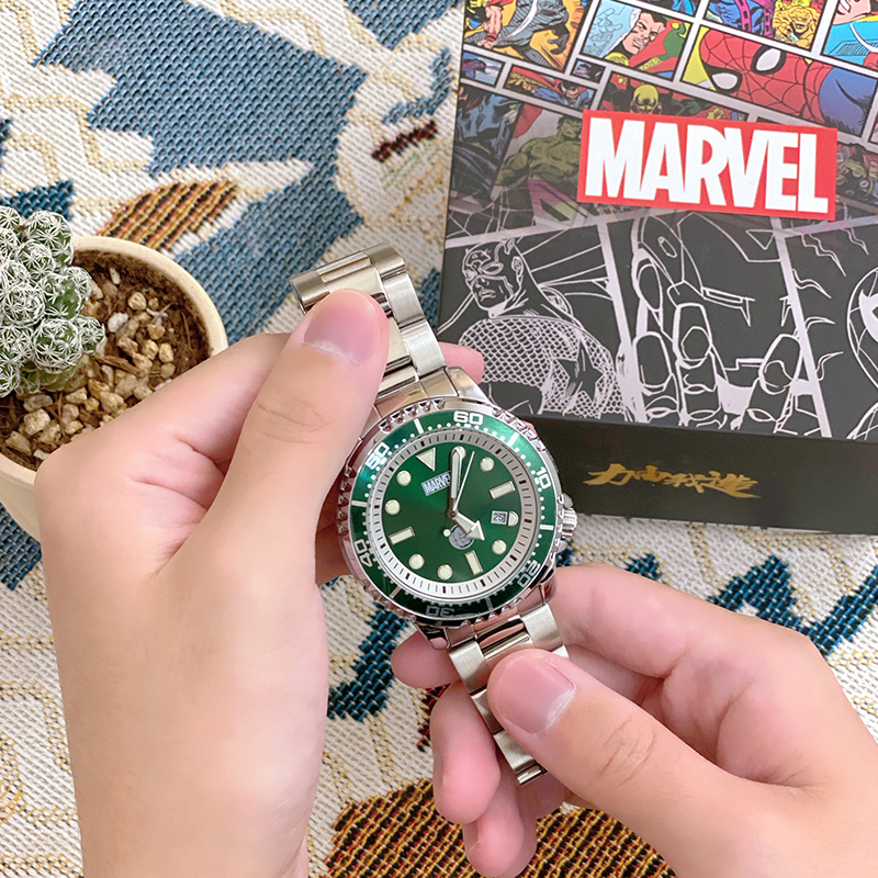 MARVEL Часы Quartz Movement Steel Strap Watch Men's Watch Green Dial