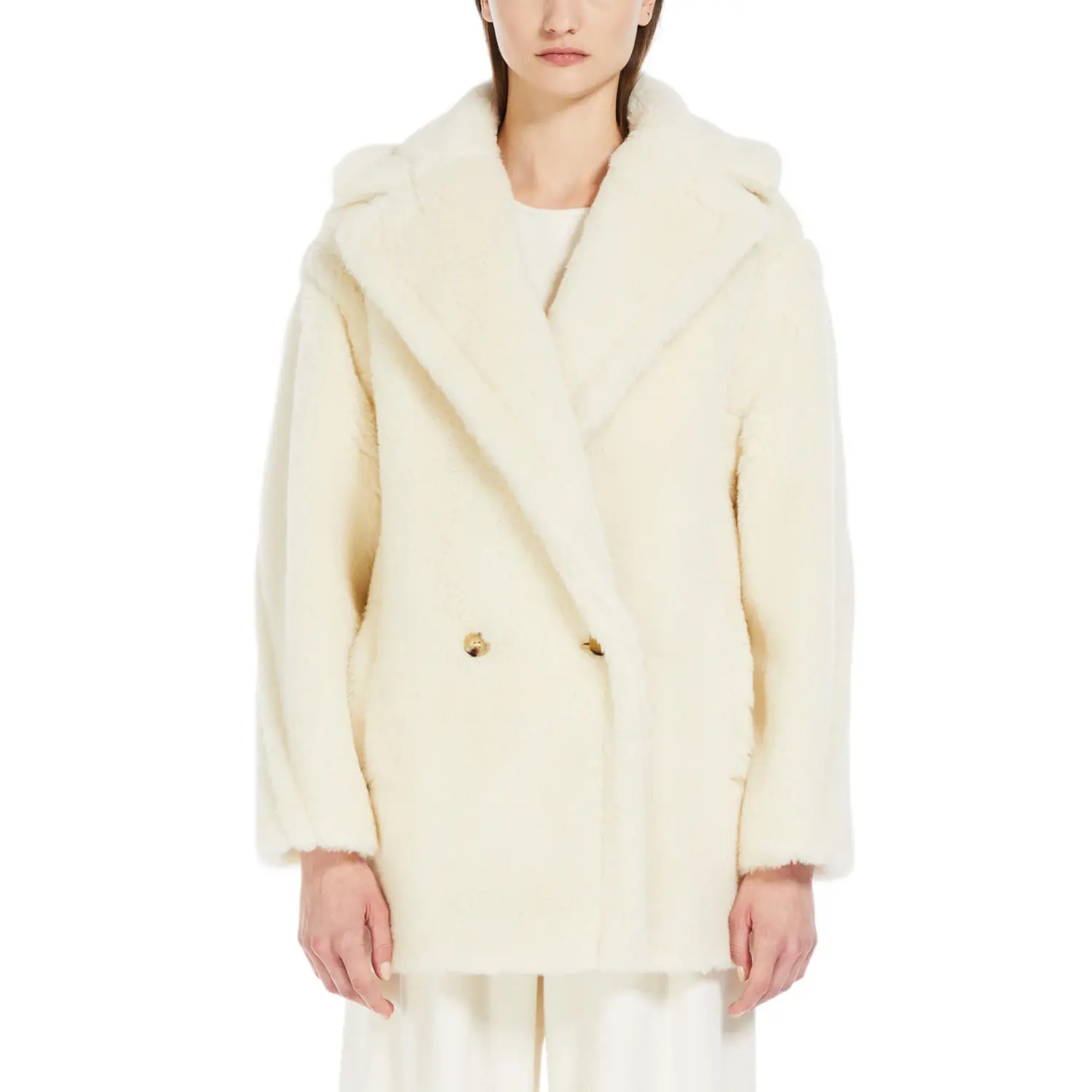 MaxMara Белое женское пальто с бархатистой текстурой, White