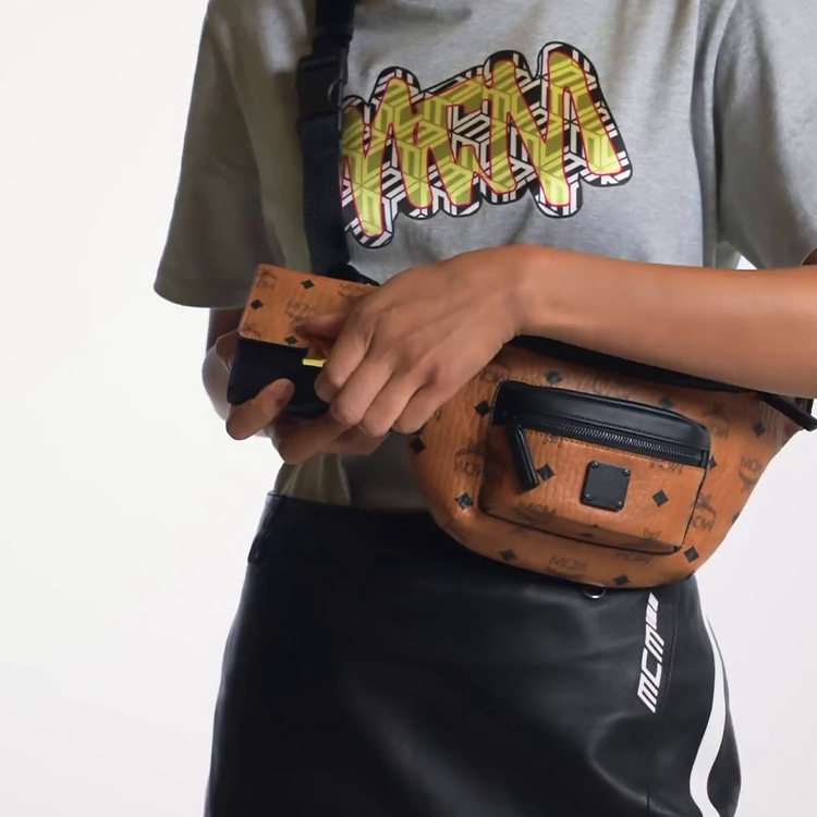 MCM Кожаный слинг-бэг мини мужской коричневый коньяк
