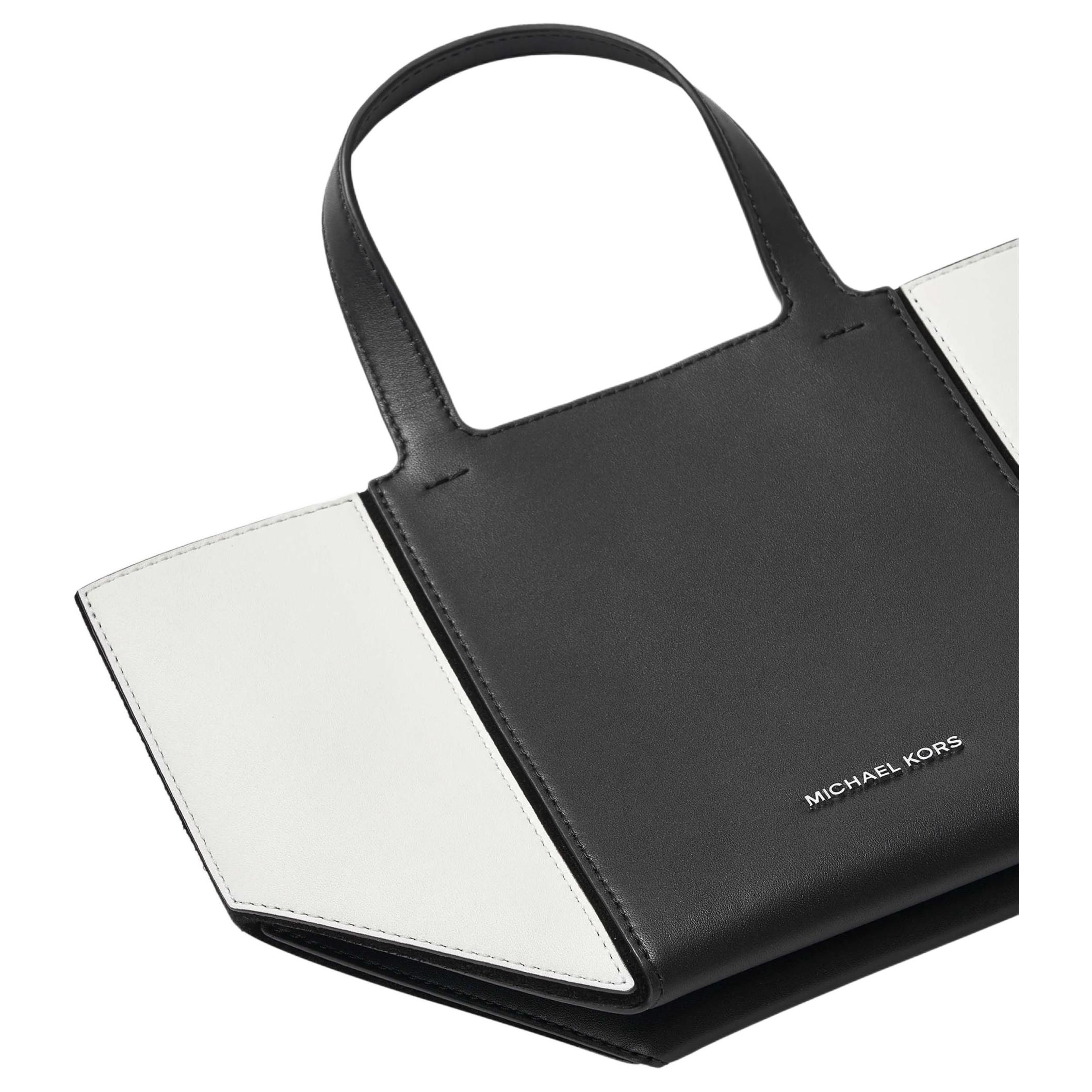 Эта маленькая кожаная сумка-тоут Jordi с черно-белыми панелями отличается элегантным минималистичным дизайном, ломающим стереотипы без ущерба для стиля. Серебряный логотип MICHAEL KORS подчеркивает первоклассное качество сумки. Удобная ручка для переноски. Практичная и вместительная сумка легко вместит все необходимое. Возьмите ее с собой в дорогу.