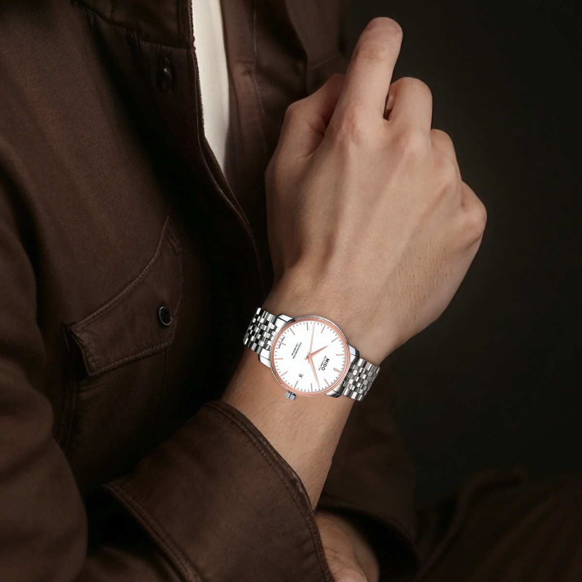 MIDO Часы Baroncelli Collection Automatic Mechanical Movement Men's Watch Watch 40mm White Dial, White