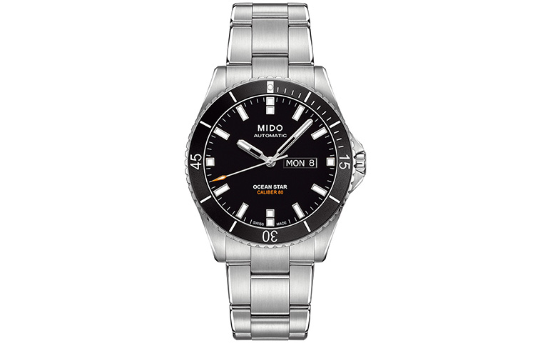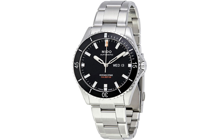 MIDO Часы Men's Leader Submariner Watch, Black Dial Silver Strap
