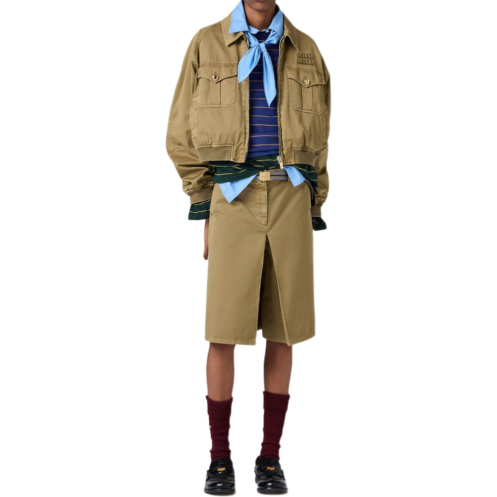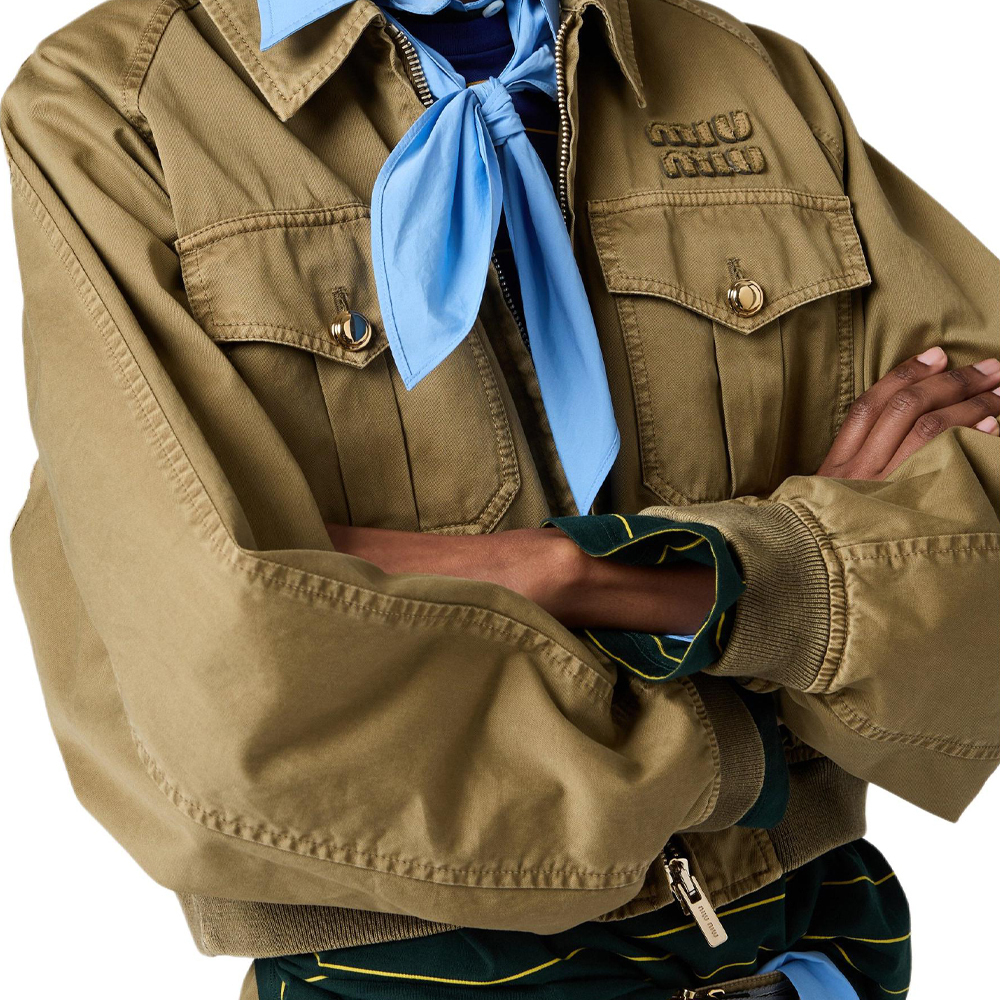MIU MIU Вареная хлопковая бомбер, Olive Green