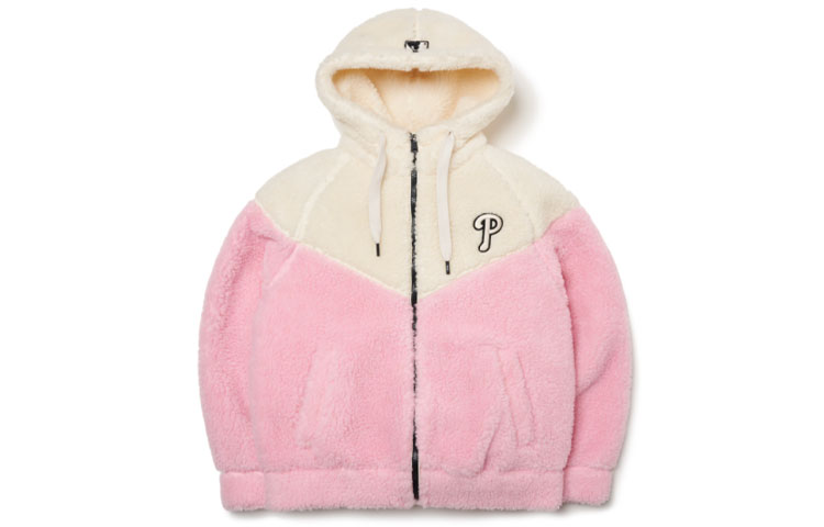 MLB Бархатная куртка унисекс розовая белая, Pink White
