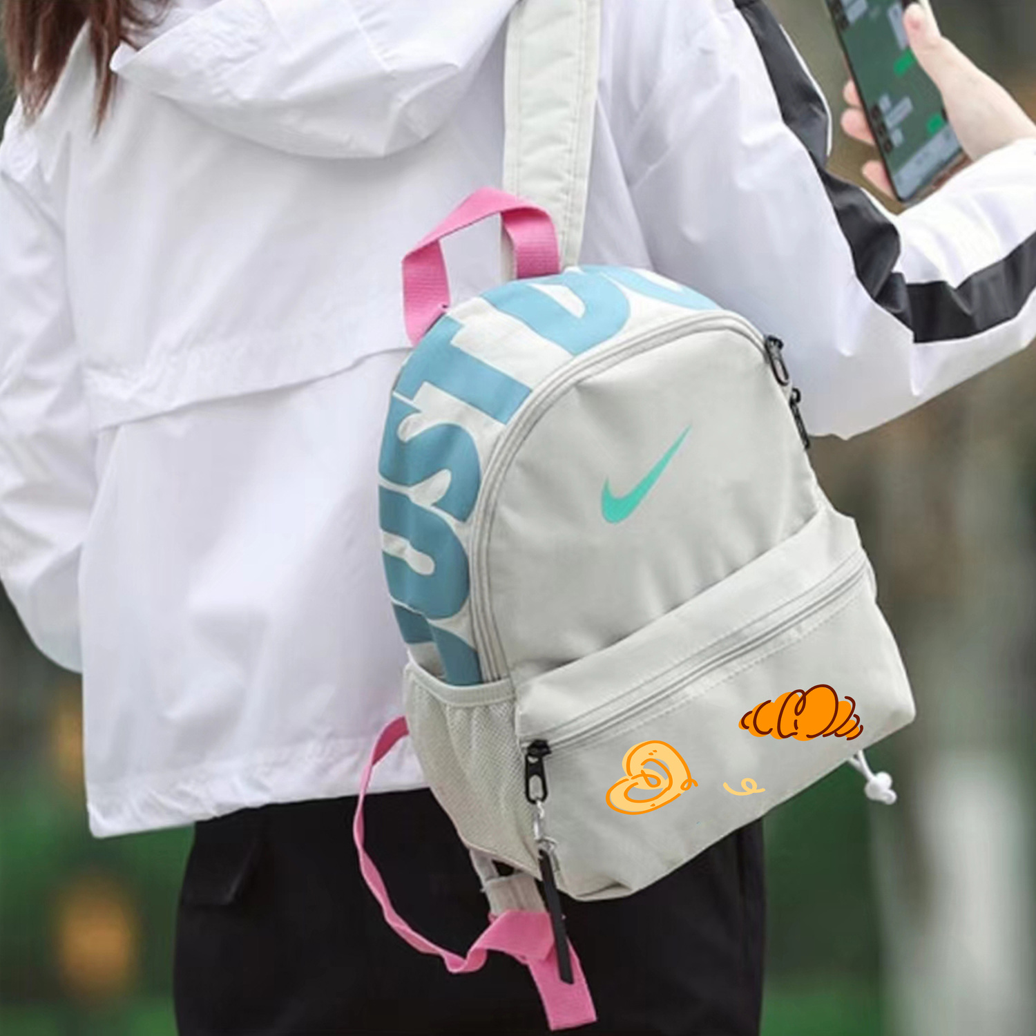 Nike Тканевый рюкзак обычный женский серый белый, Gray White 8 726₽