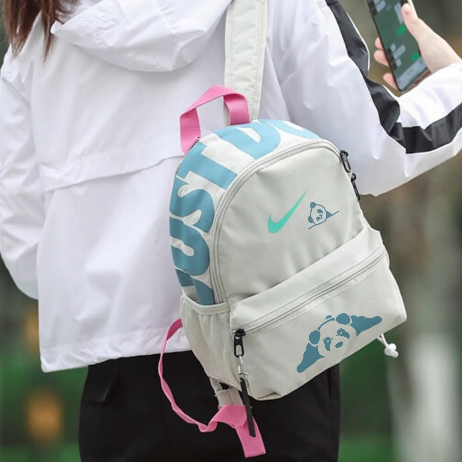 Nike Тканевый рюкзак обычный женский серый белый, Printed Dog