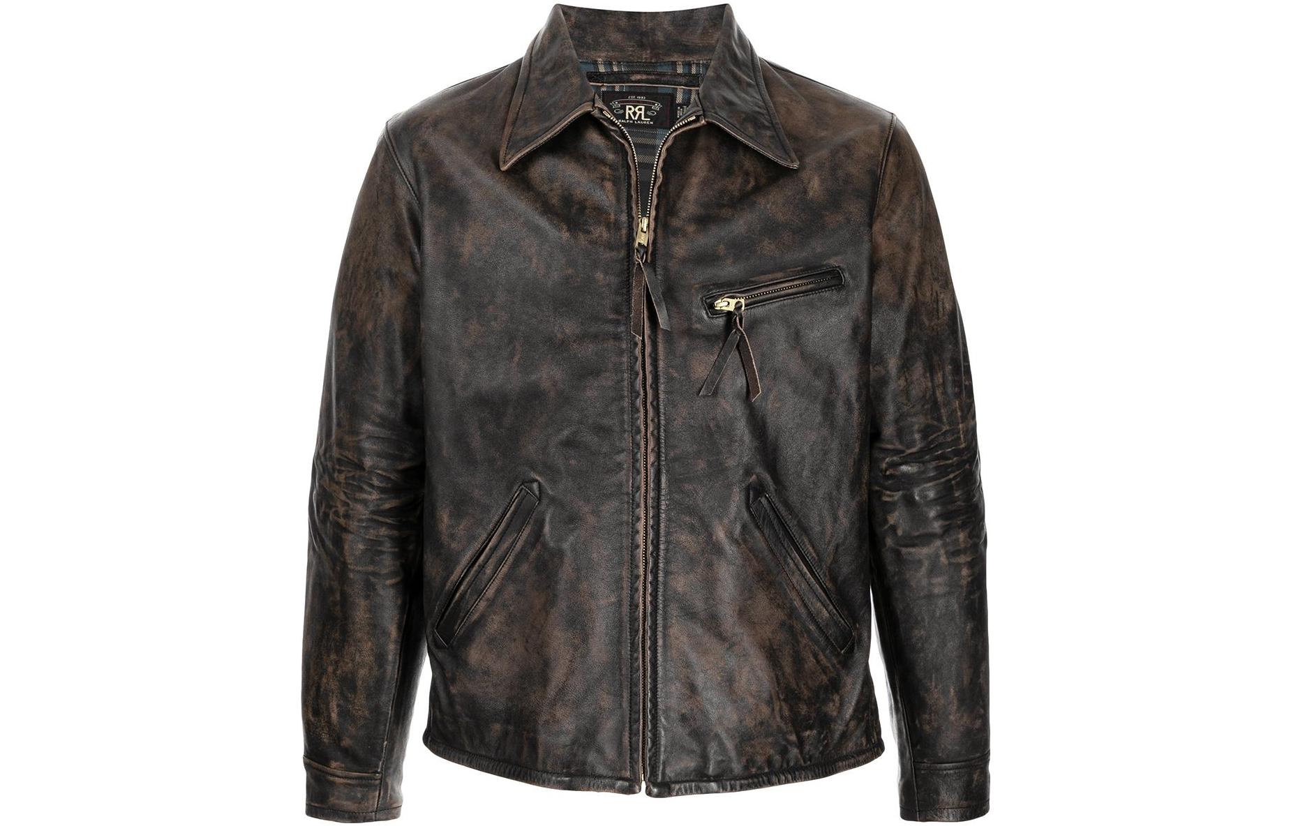 Double RL Кожаная куртка-поло на молнии, Umber 271 417₽