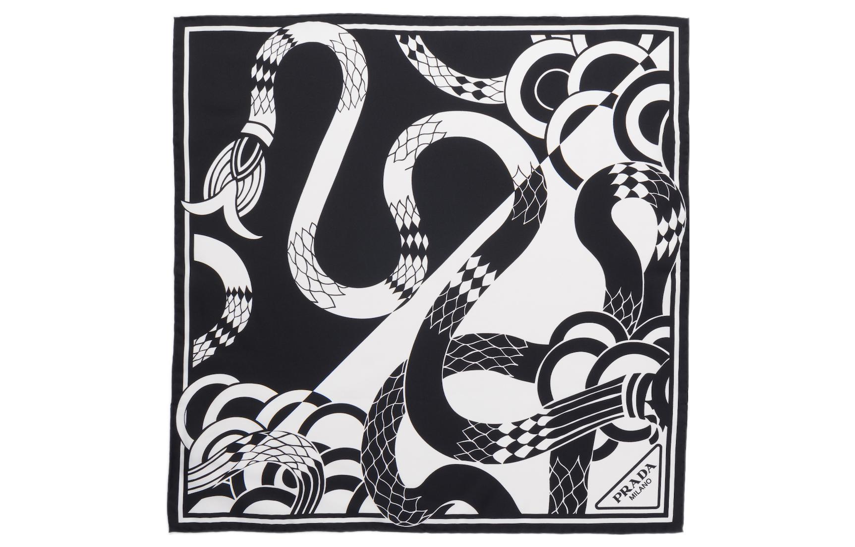 PRADA Шелковый шарф с змеиным принтом, White 43 679₽