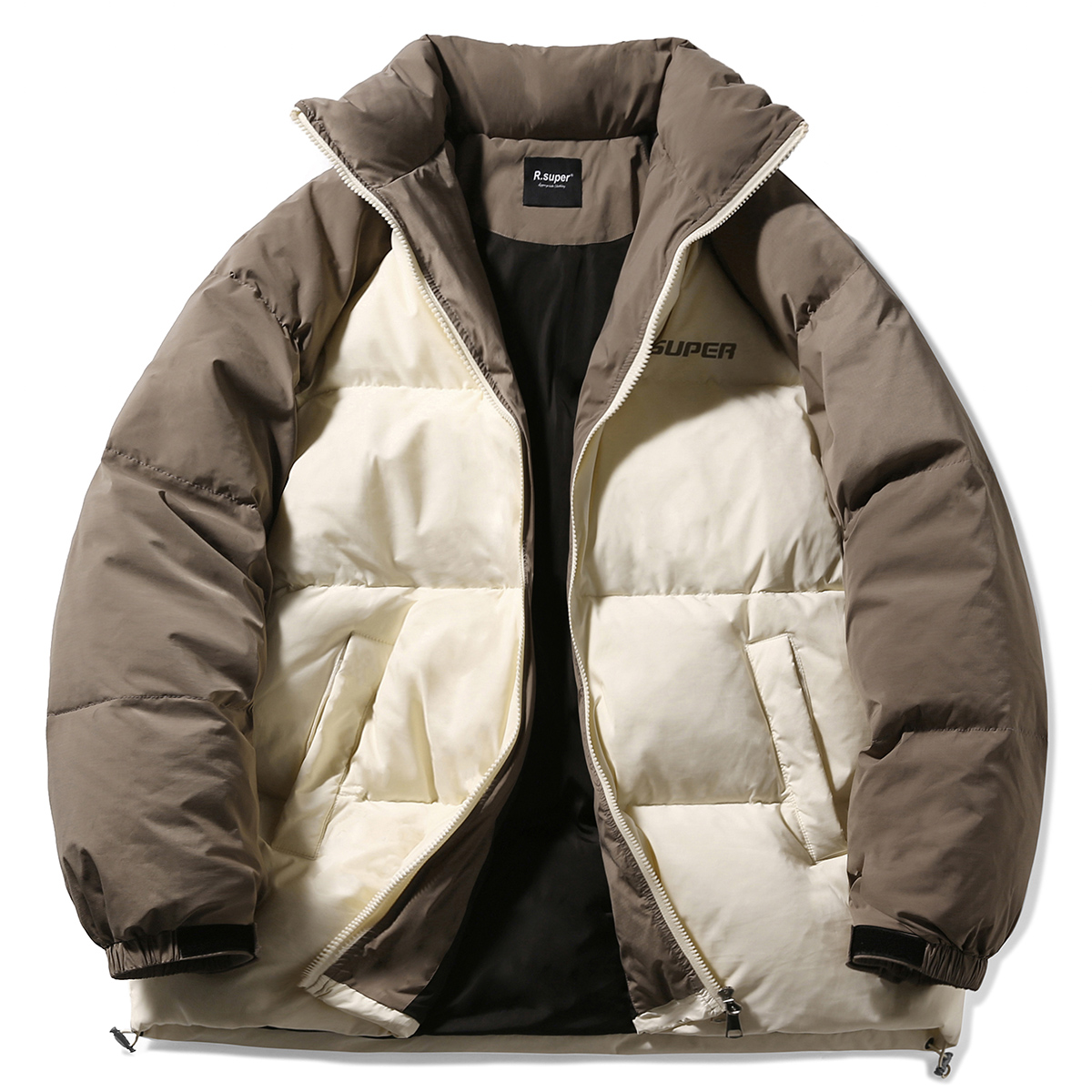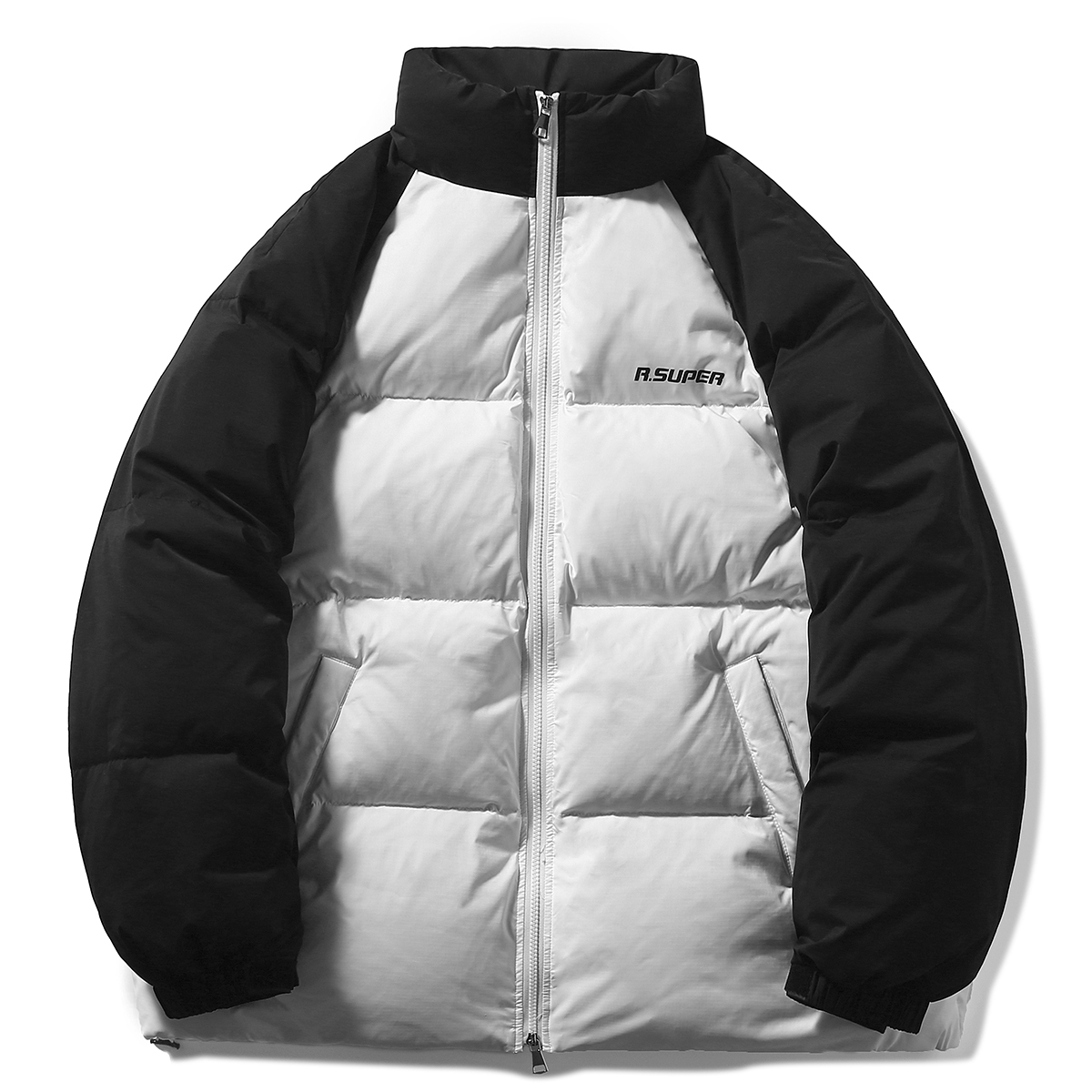 R.super Унисекс пуховик, White Body with Black Sleeves
