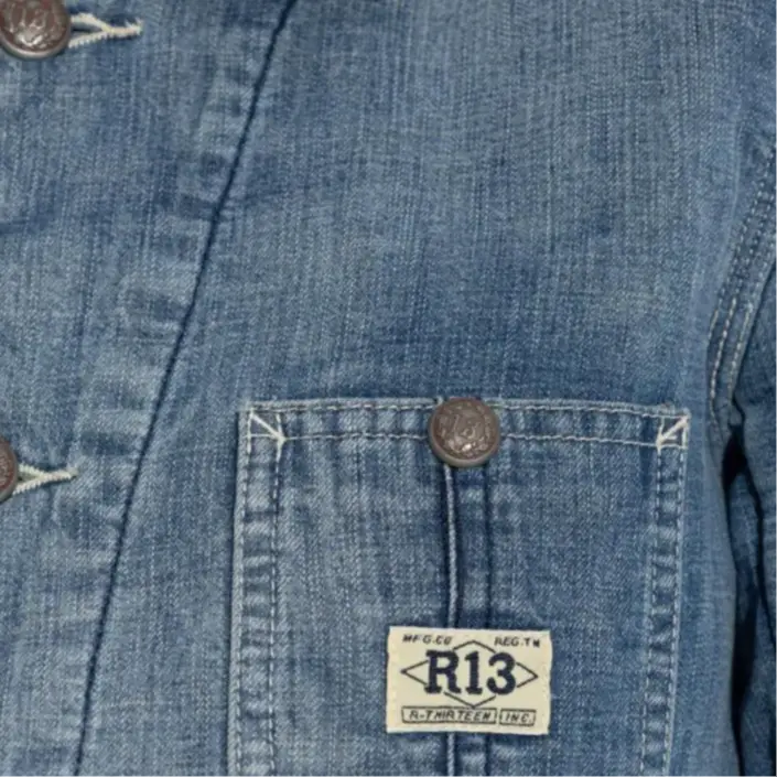 R13 Джинсовая куртка с воротником из вельвета, Blue