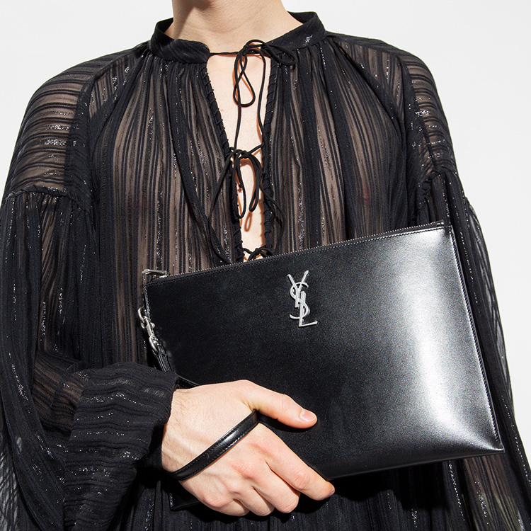 SAINT LAURENT Кожаная клатч мужская черная