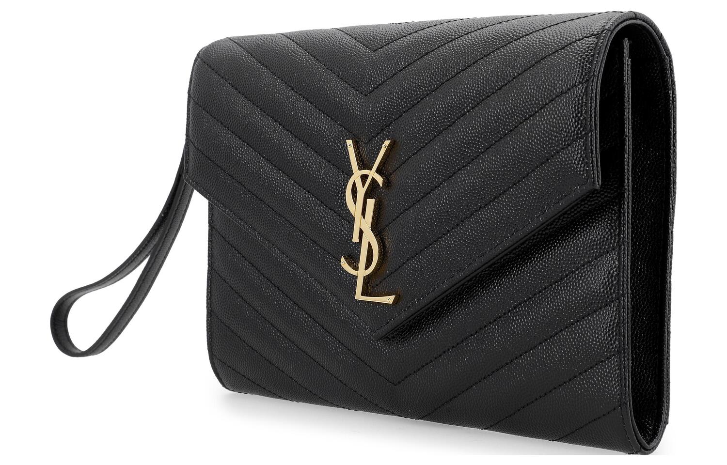 SAINT LAURENT Кожаный клатч женский черный