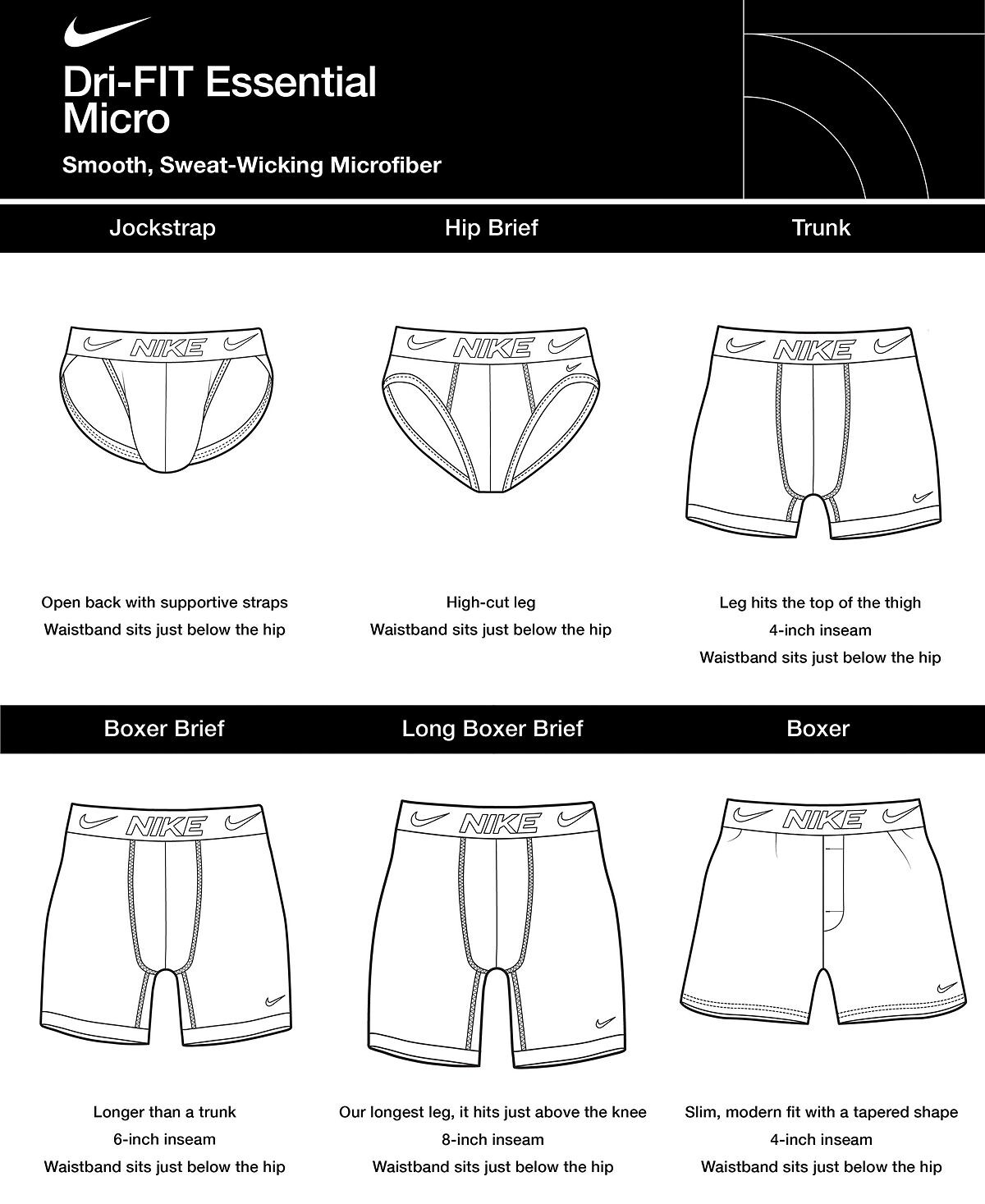 Боксеры Nike Dri-FIT Essential Micro изготовлены из гладкой эластичной микрофибры, обеспечивающей свободу движений и облегающей посадки для создания индивидуального образа.