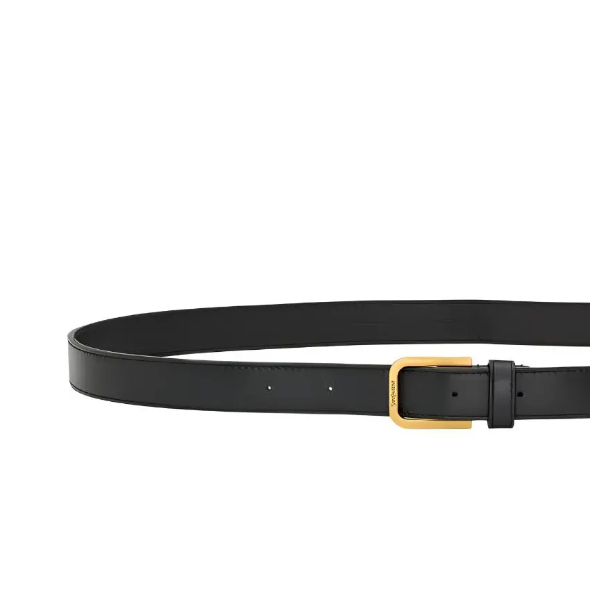 SAINT LAURENT Минималистичный ремень с гравировкой логотипа, Black