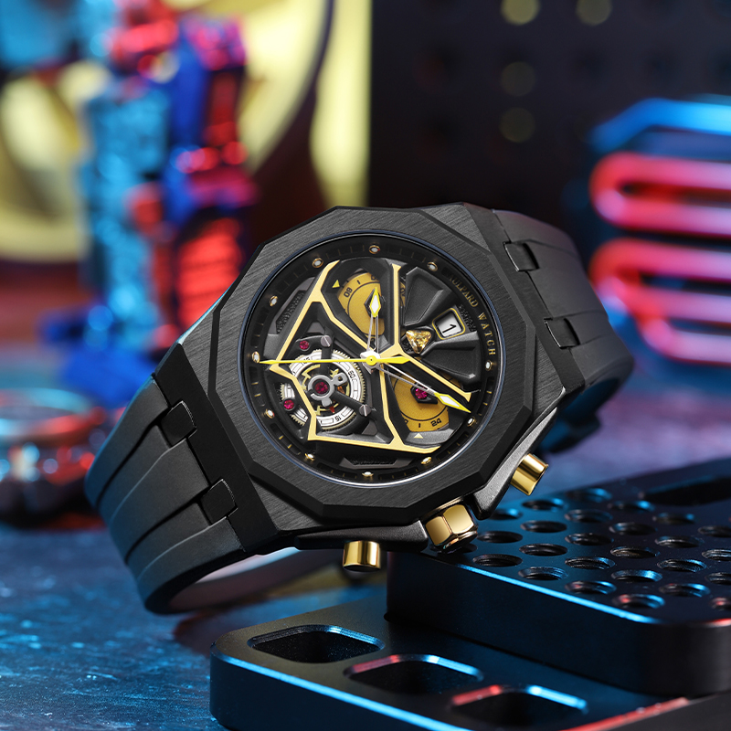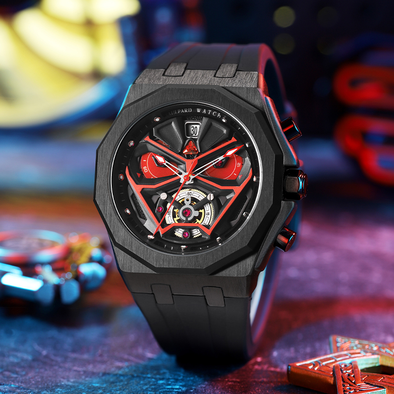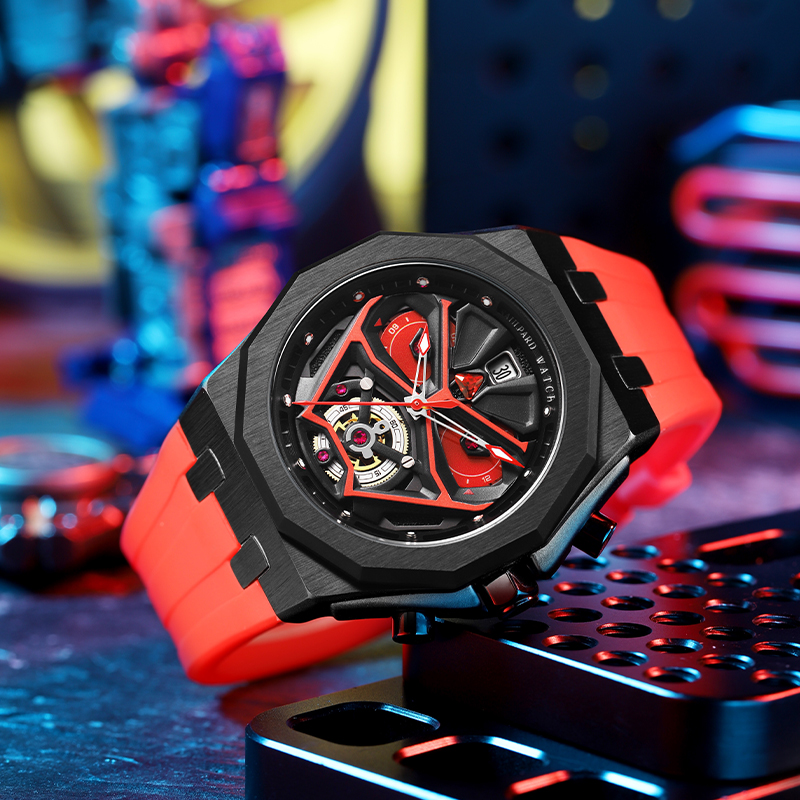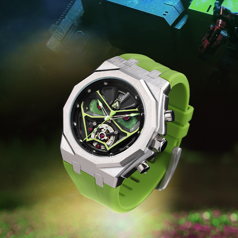 SAULPARD Часы Quartz Movement Watch Unisex Green Dial, Black & Red Silicone Strap