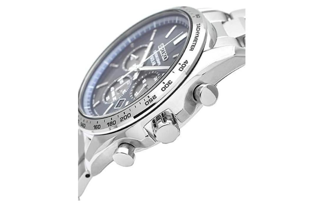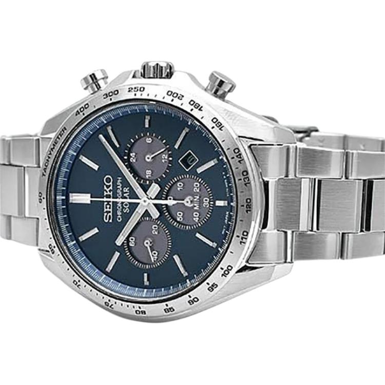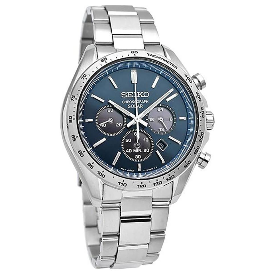 SEIKO Часы Solar Quartz Movement Stainless Steel Strap Watch Men's Watch Blue Dial