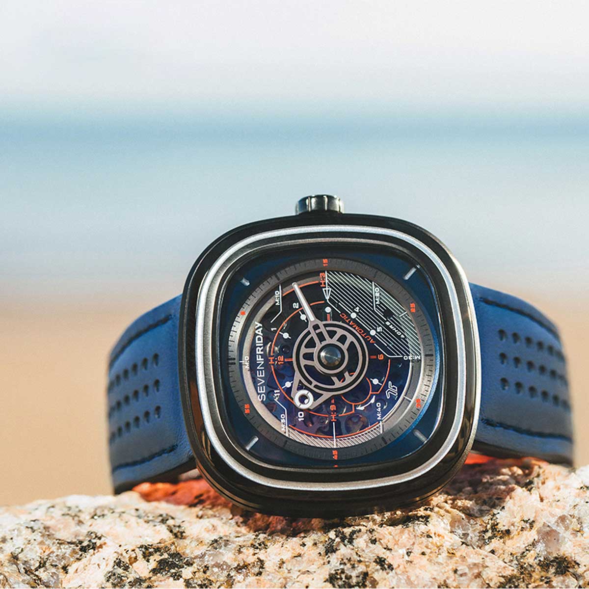 SEVENFRIDAY Часы Automatic Mechanical Movement Unisex Watch Blue Dial, T3/01 Blue+Biker Hat