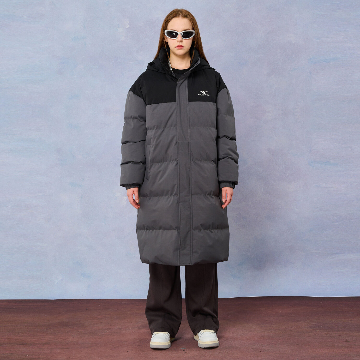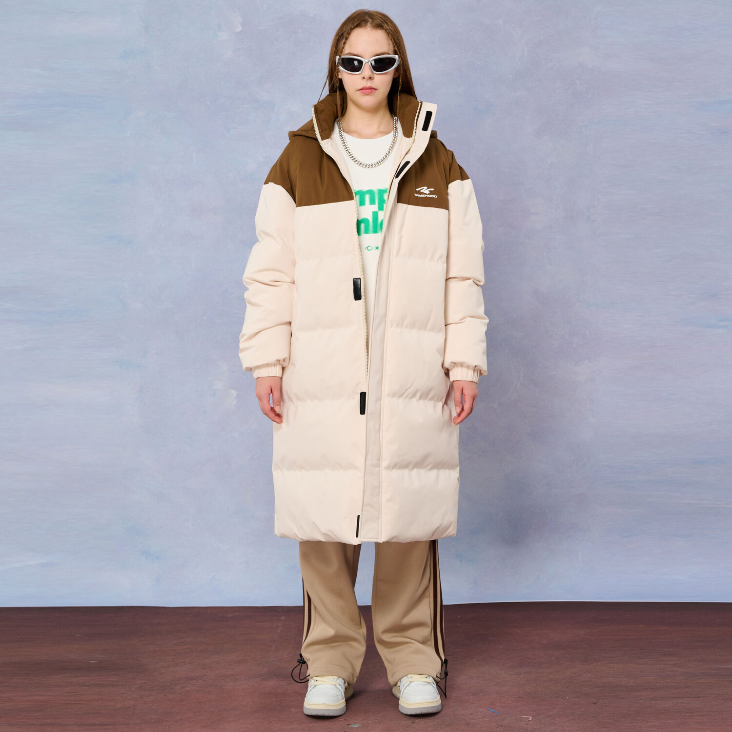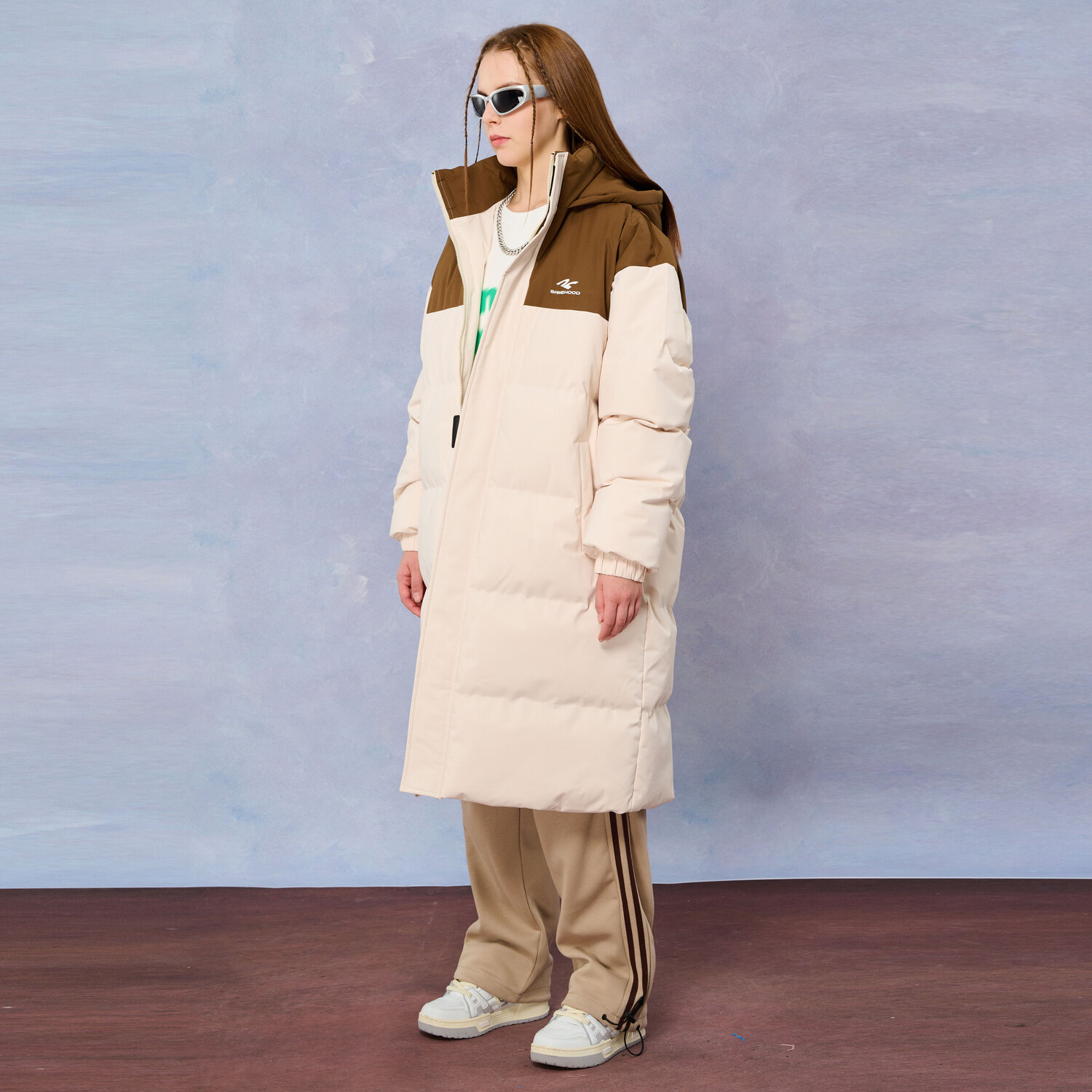 SIMPLE RIMLESS Пуховик SRME Unisex, Brown & Apricot
