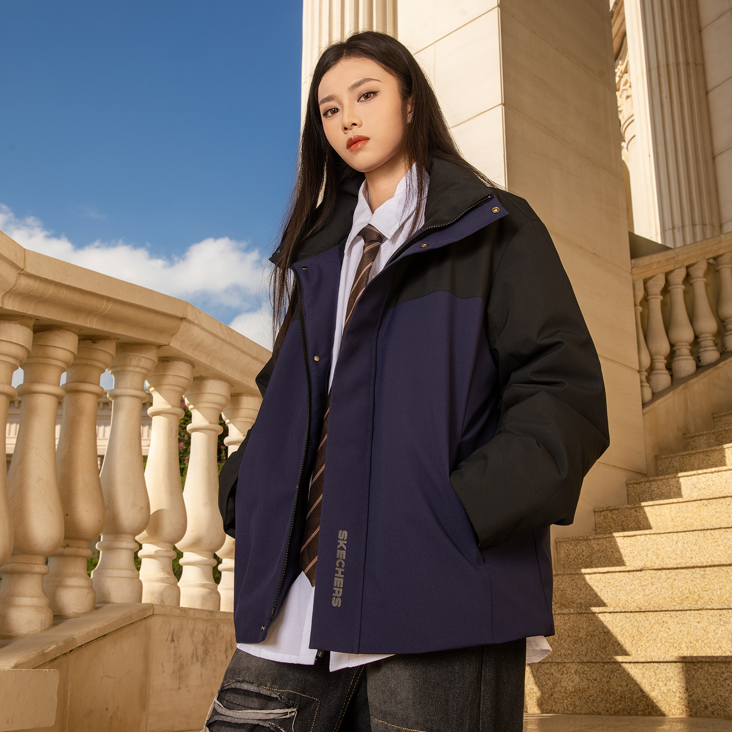 Skechers Ячжуан серия пуховик унисекс, Navy 11 443₽