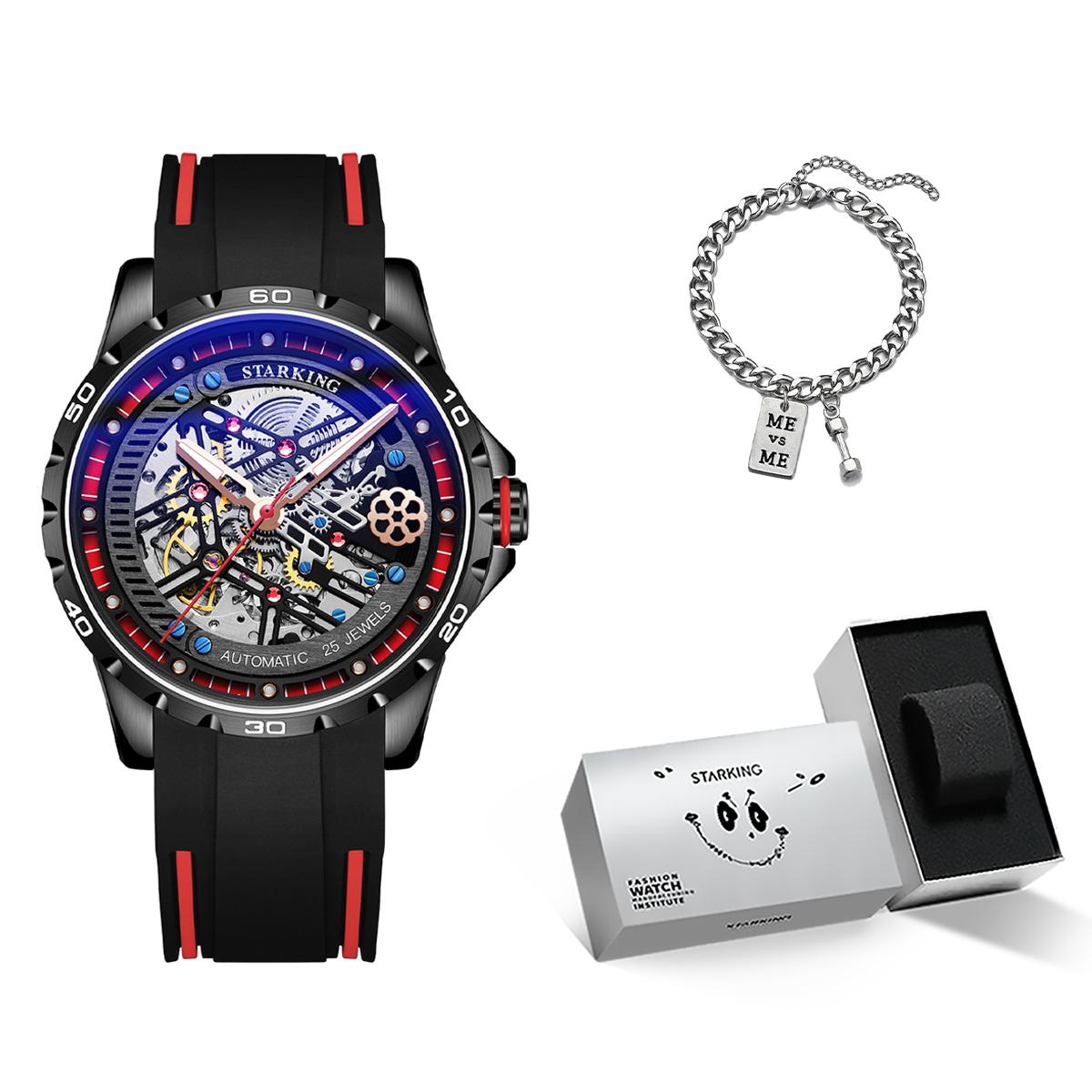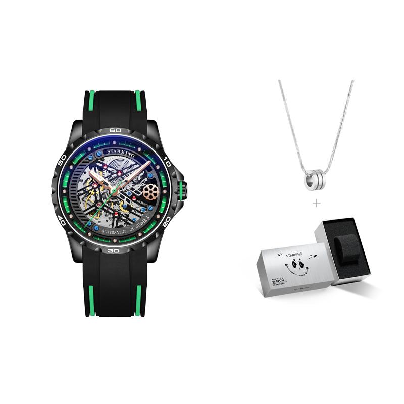 STARKING Часы Automatic Mechanical Movement Rubber Strap Watch Men's Watch Black Dial