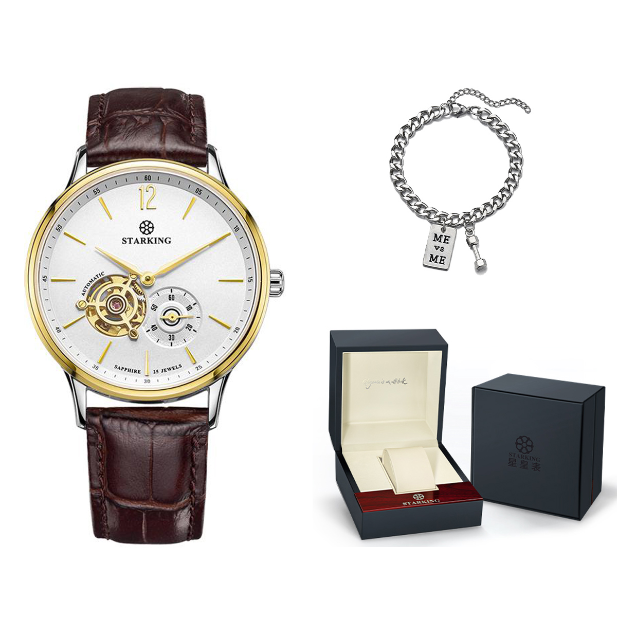 STARKING Часы Automatic Mechanical Movement Stainless Steel Watchband Watch Unisex White Dial