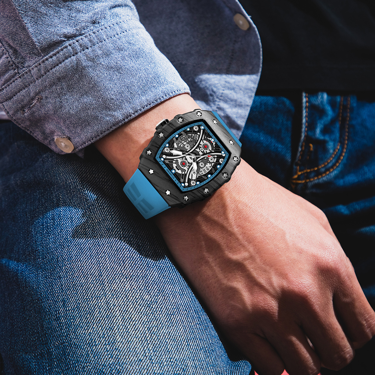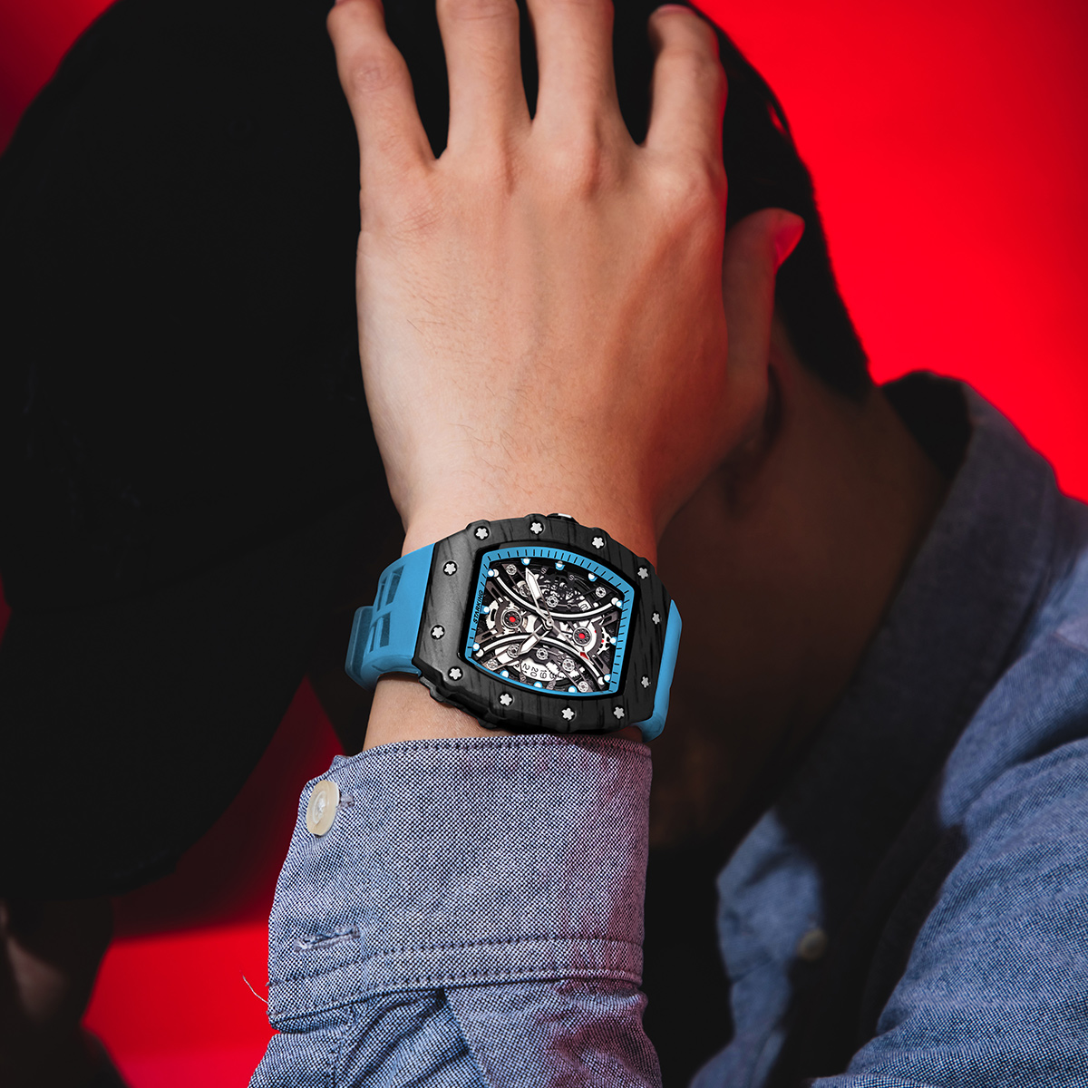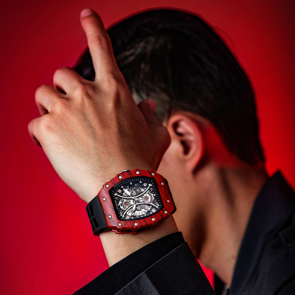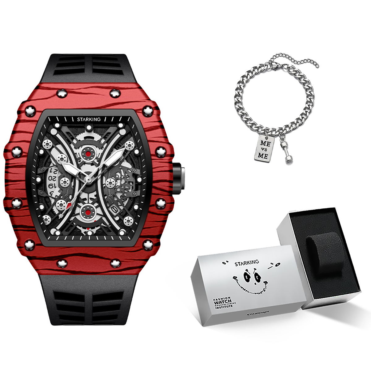 STARKING Часы Richard Collection Quartz Movement Silicone Strap Watch Men's Watch Black Dial