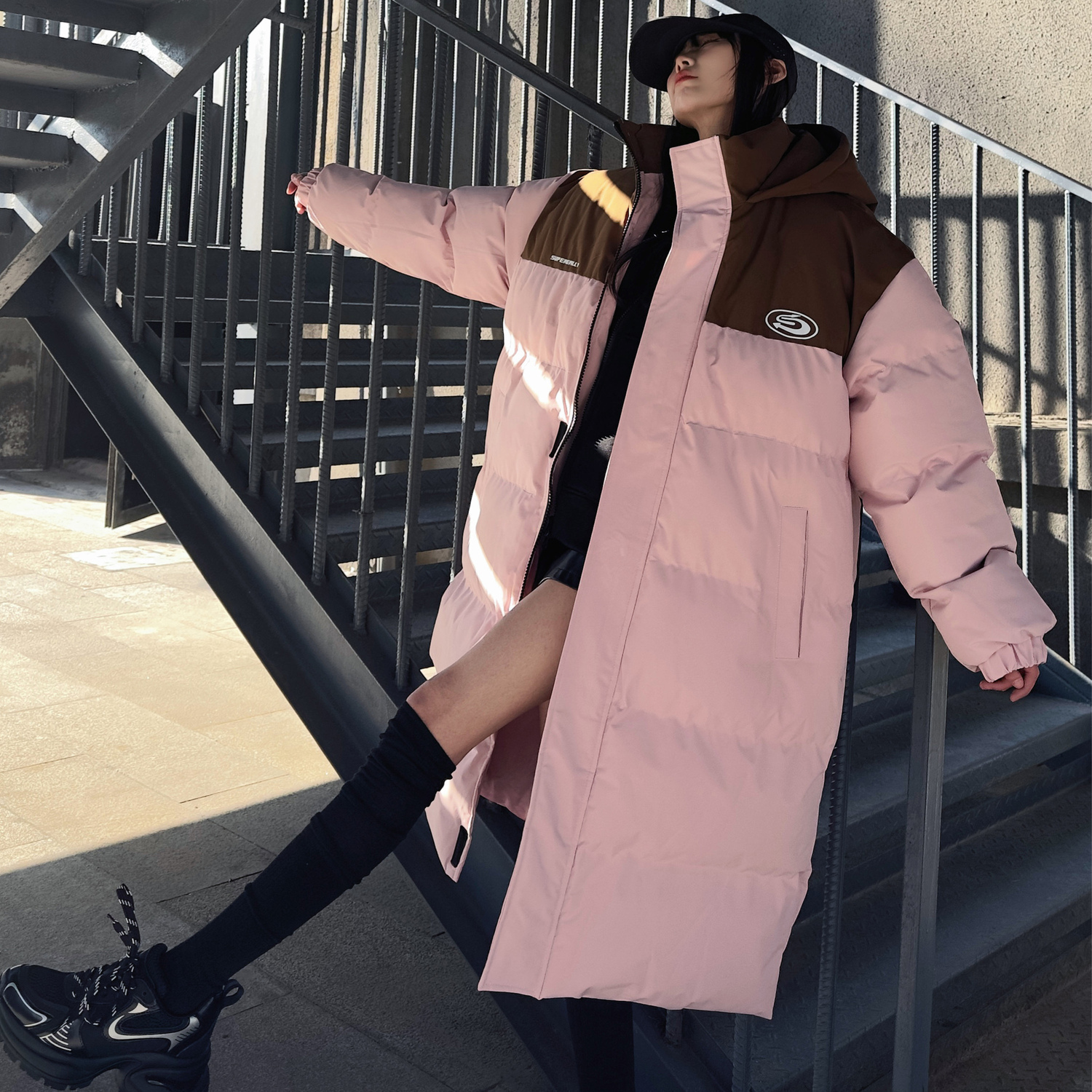 SUPEREALLY Пуховик Unisex, Black & Light Apricot