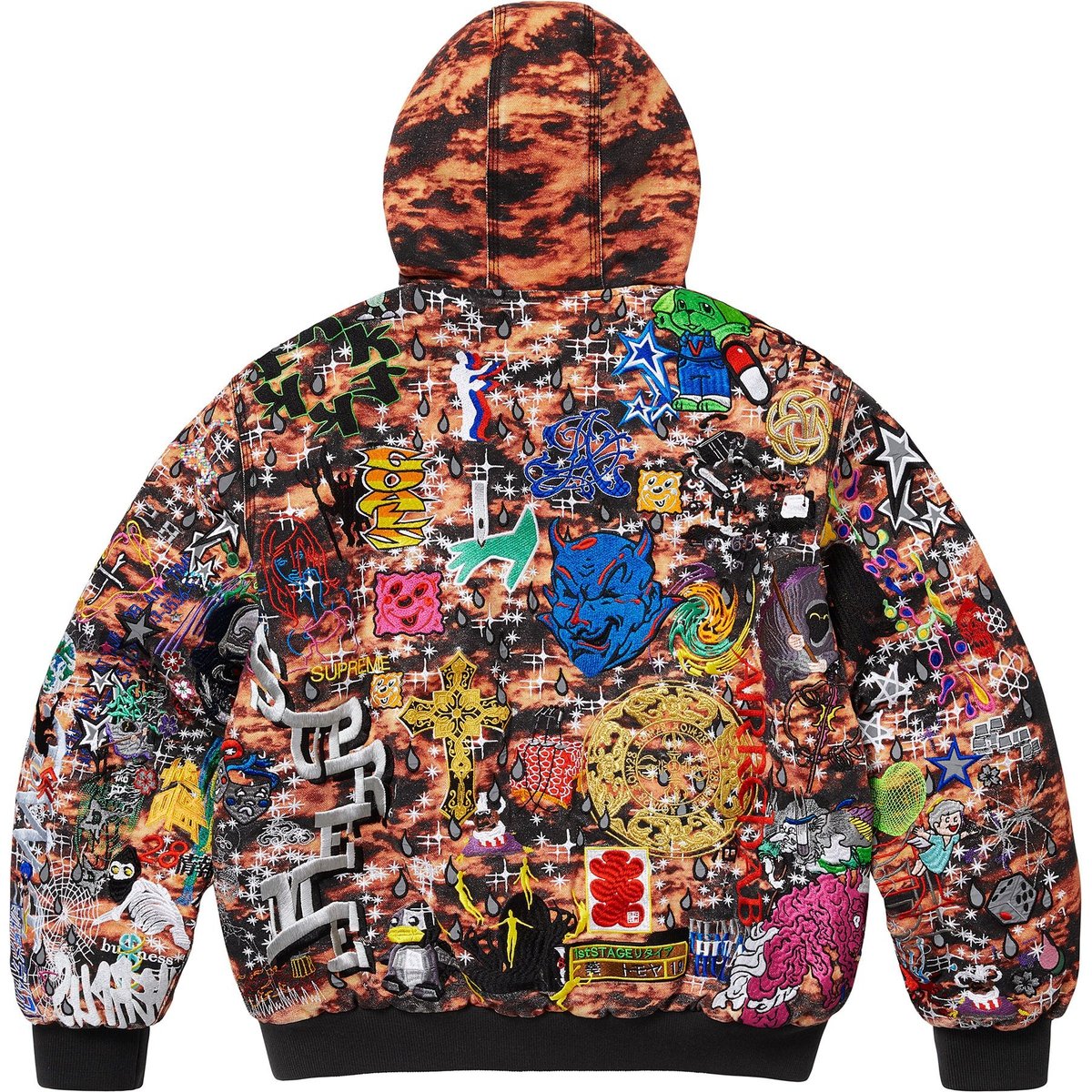 Supreme Аой вышитая рабочая куртка с капюшоном, Black