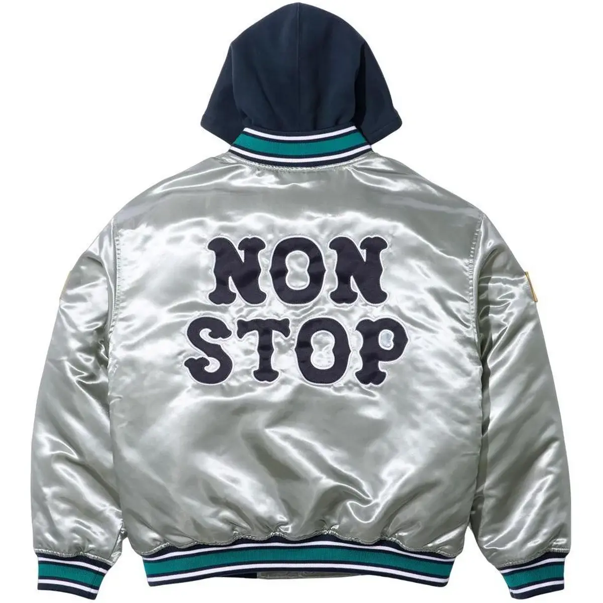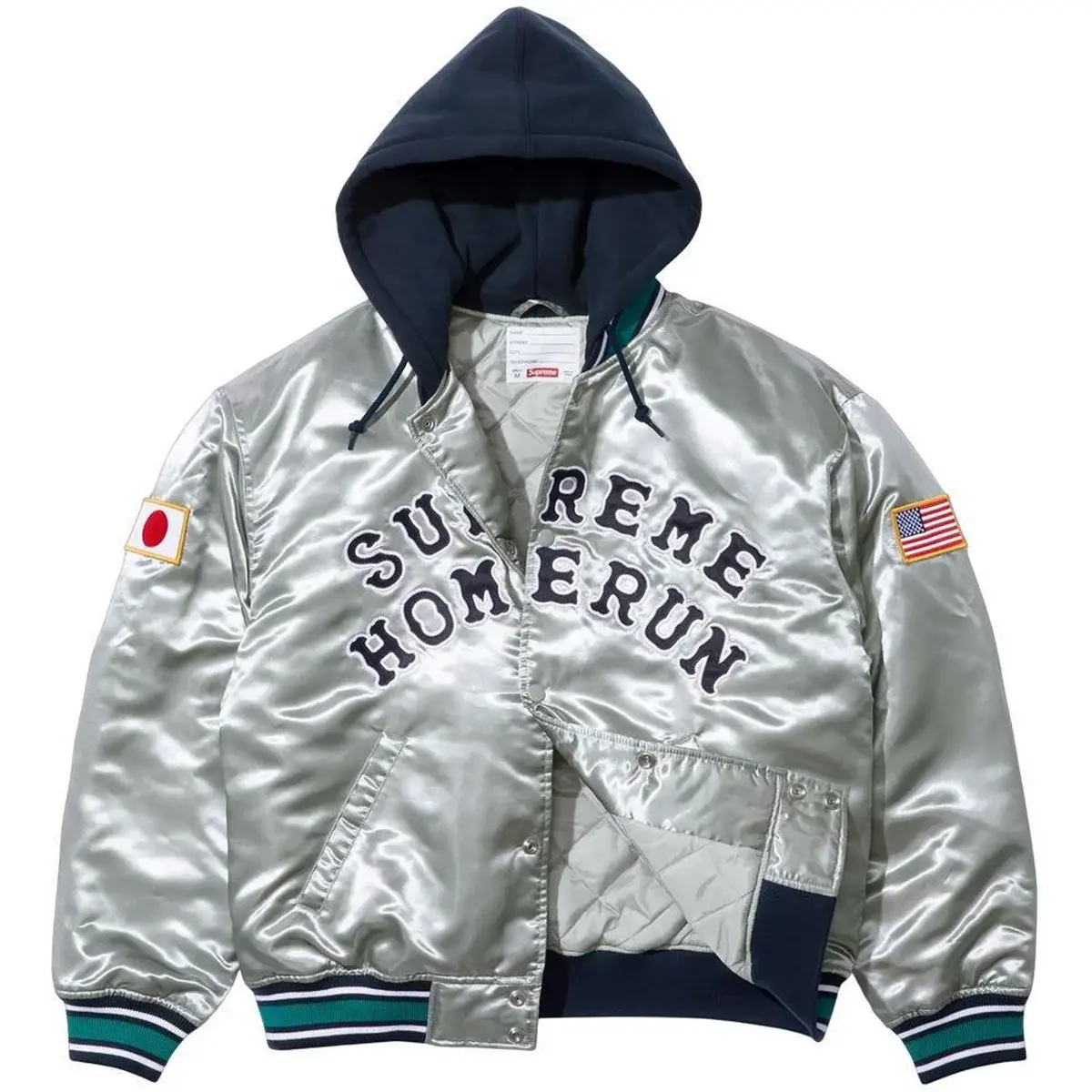 Supreme Сатиновая бейсбольная куртка с капюшоном, Black