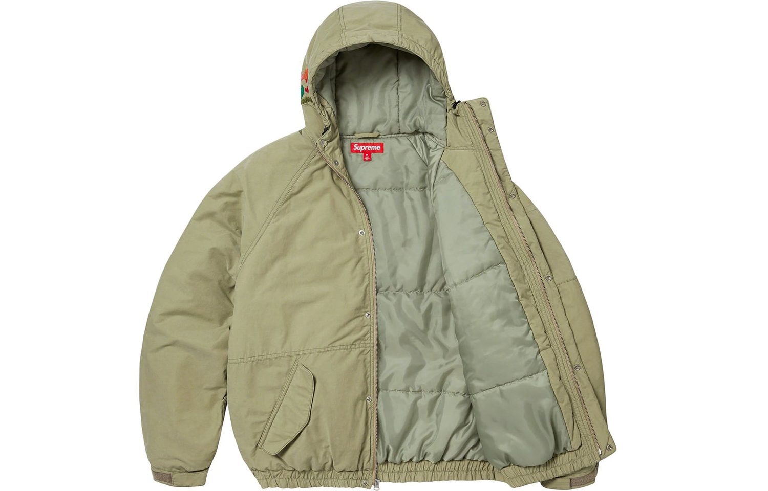 Supreme Куртка с капюшоном в технике игольного шитья, Olive Green/Olive