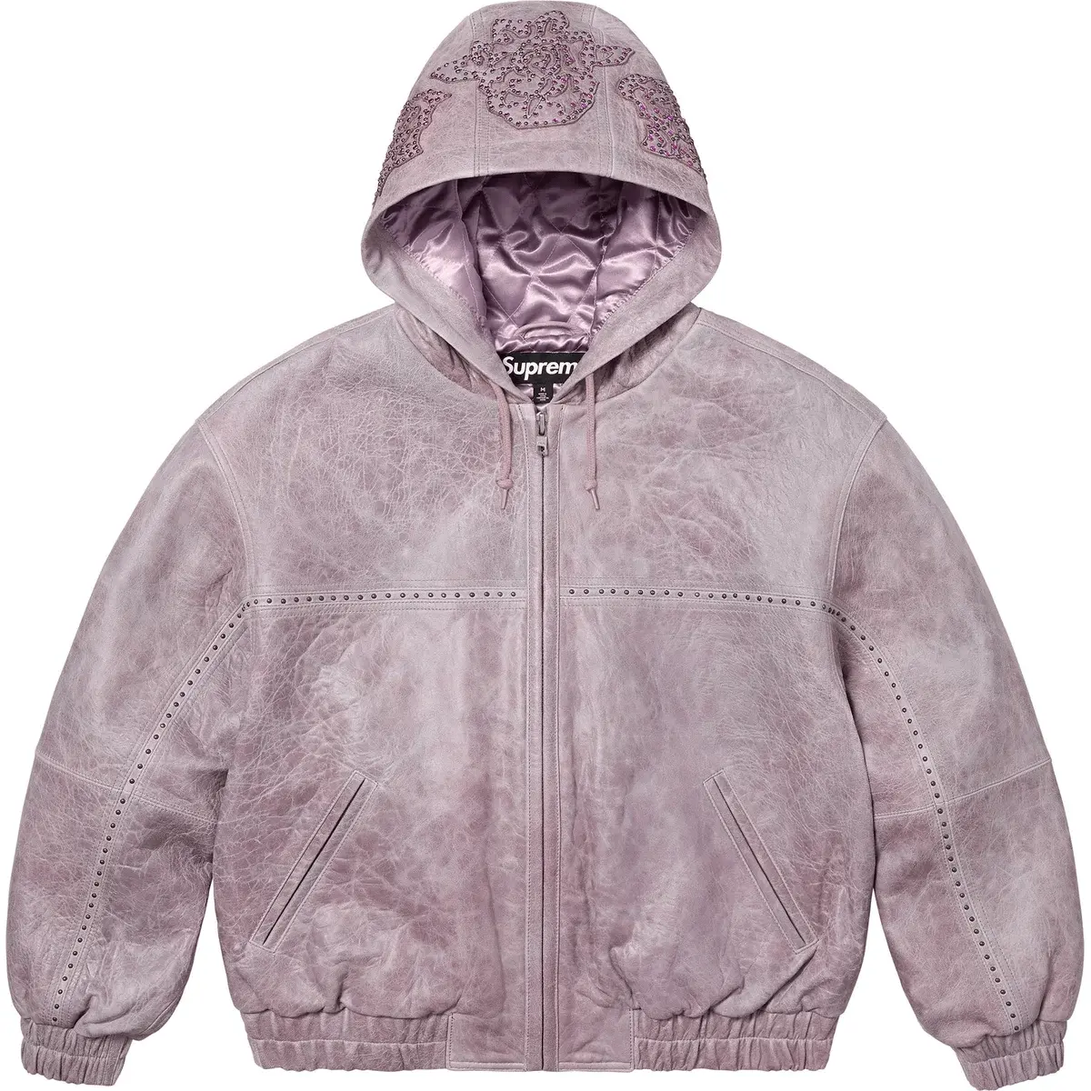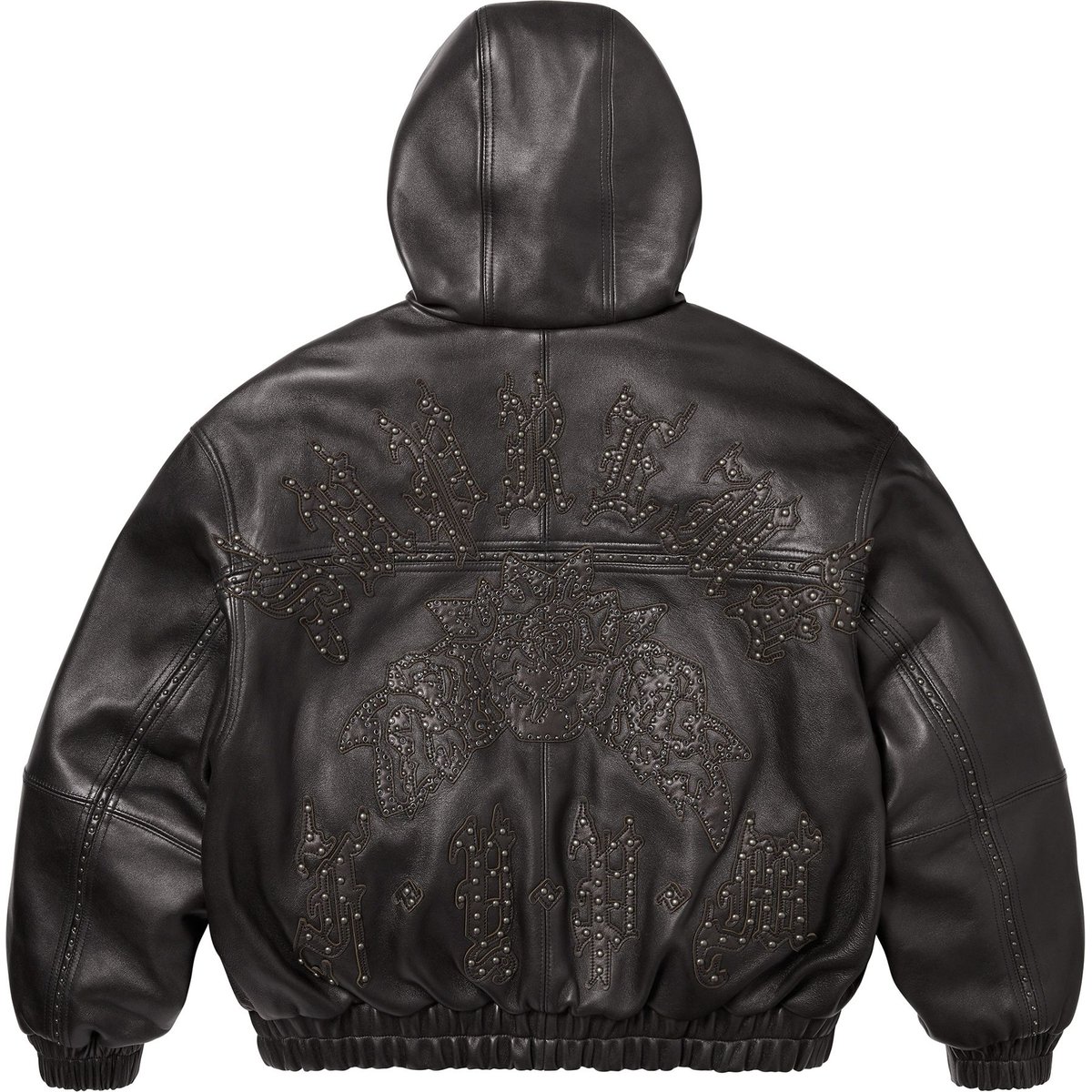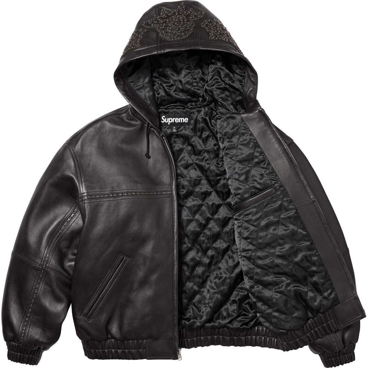 Supreme Кожаная куртка с капюшоном и заклепками, Black