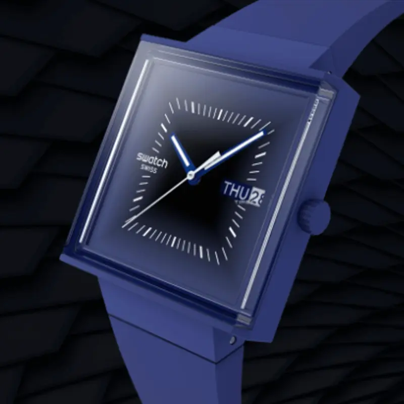 SWATCH Часы Quartz Movement Unisex Watch 41.8mm Blue Dial Plastic Watch Case Silicone Strap, Blue Dial