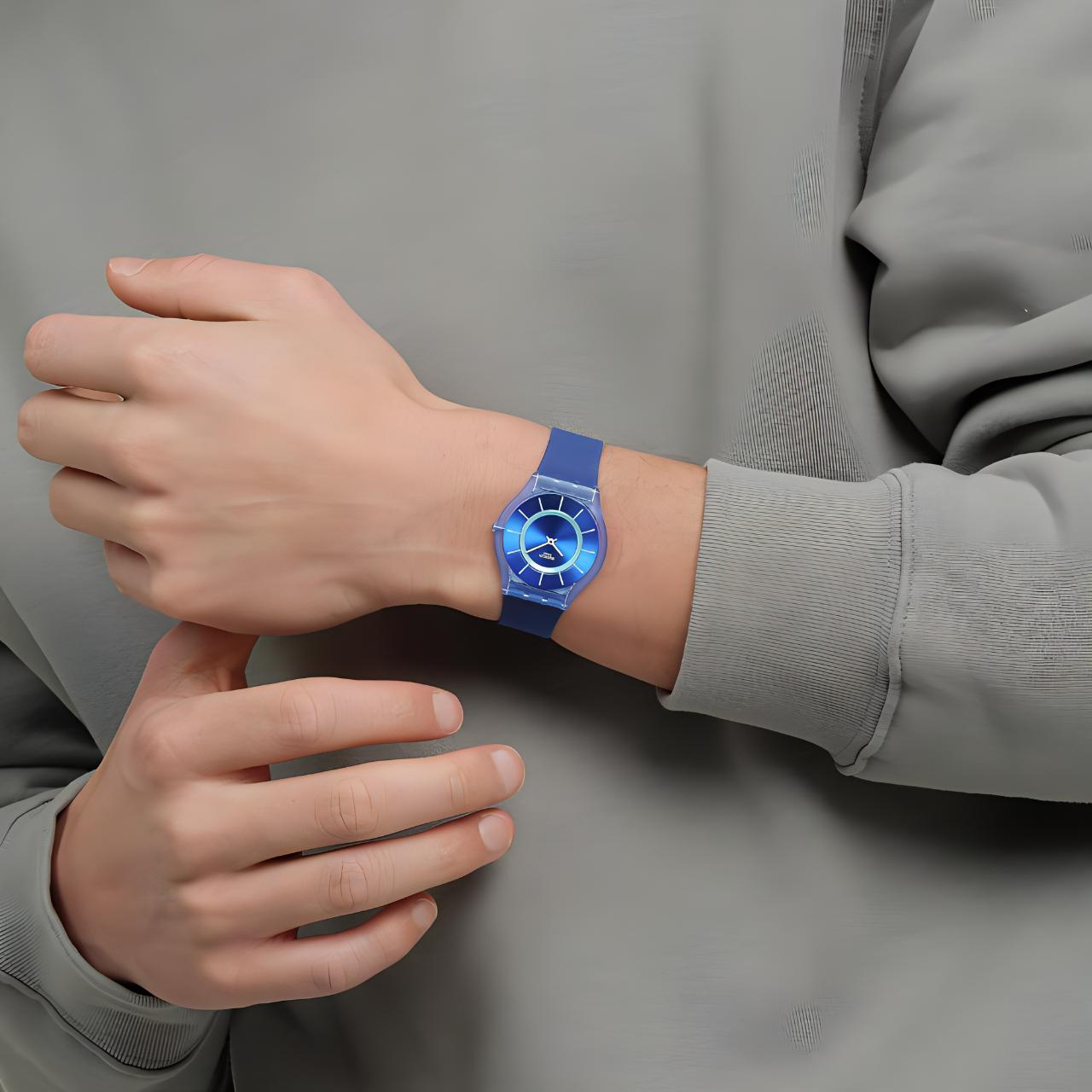 SWATCH Часы SKIN Collection Quartz Movement Unisex Watch 34mm Blue Dial Bio Based Watch Case Silicone Strap, Blue Dial