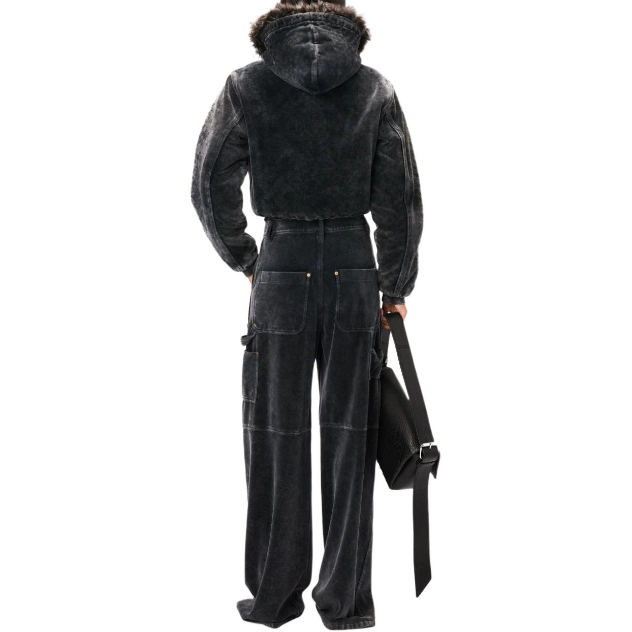 Alexander Wang Толстовка с капюшоном отделкой из овчины, Washable Slate Gray