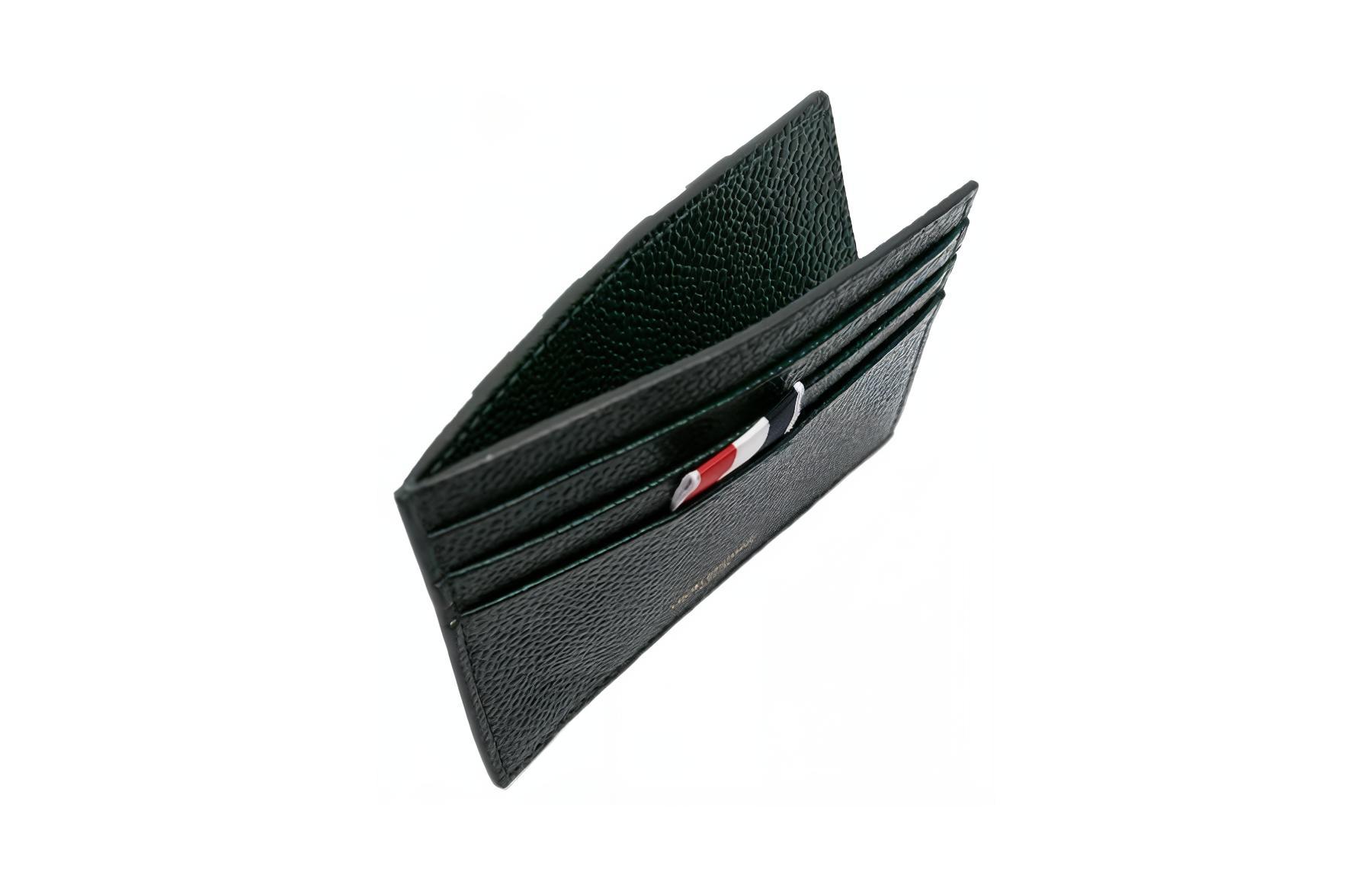 THOM BROWNE Кожаный картхолдер мужской тёмно-зелёный