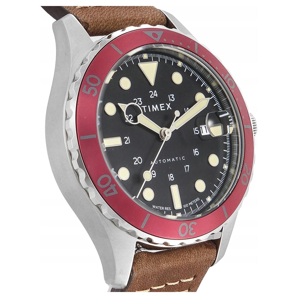 TIMEX Часы Wrist Watch Automatic Mechanical Movement Genuine Leather Strap Black Dial Men's Watch, Black Dial