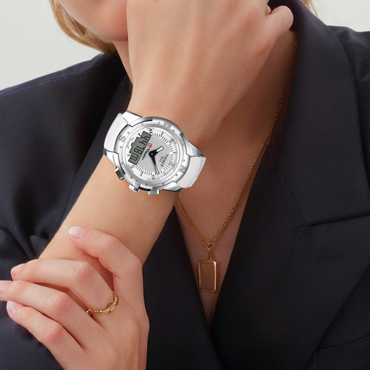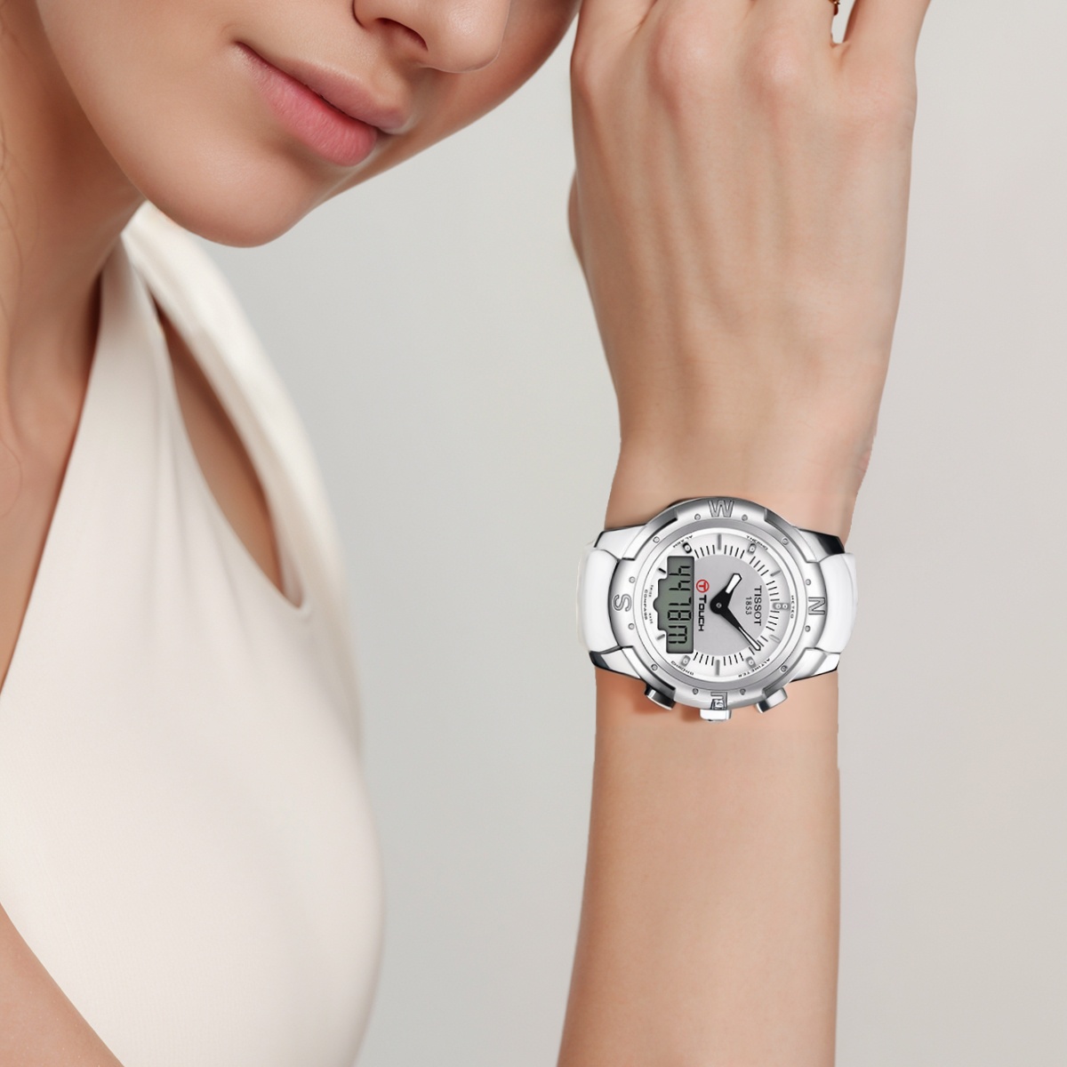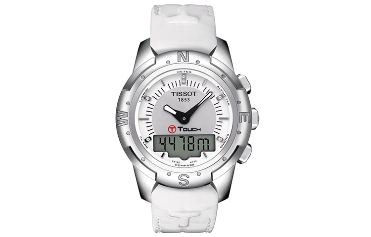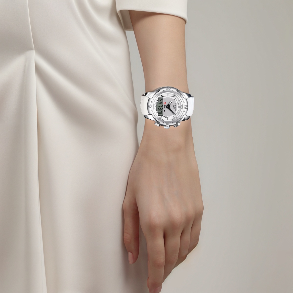 TISSOT Часы Touchscreen Collection Quartz Movement Unisex Watch 43.3mm White Dial Titanium Watch Case Leather Strap, White Dial