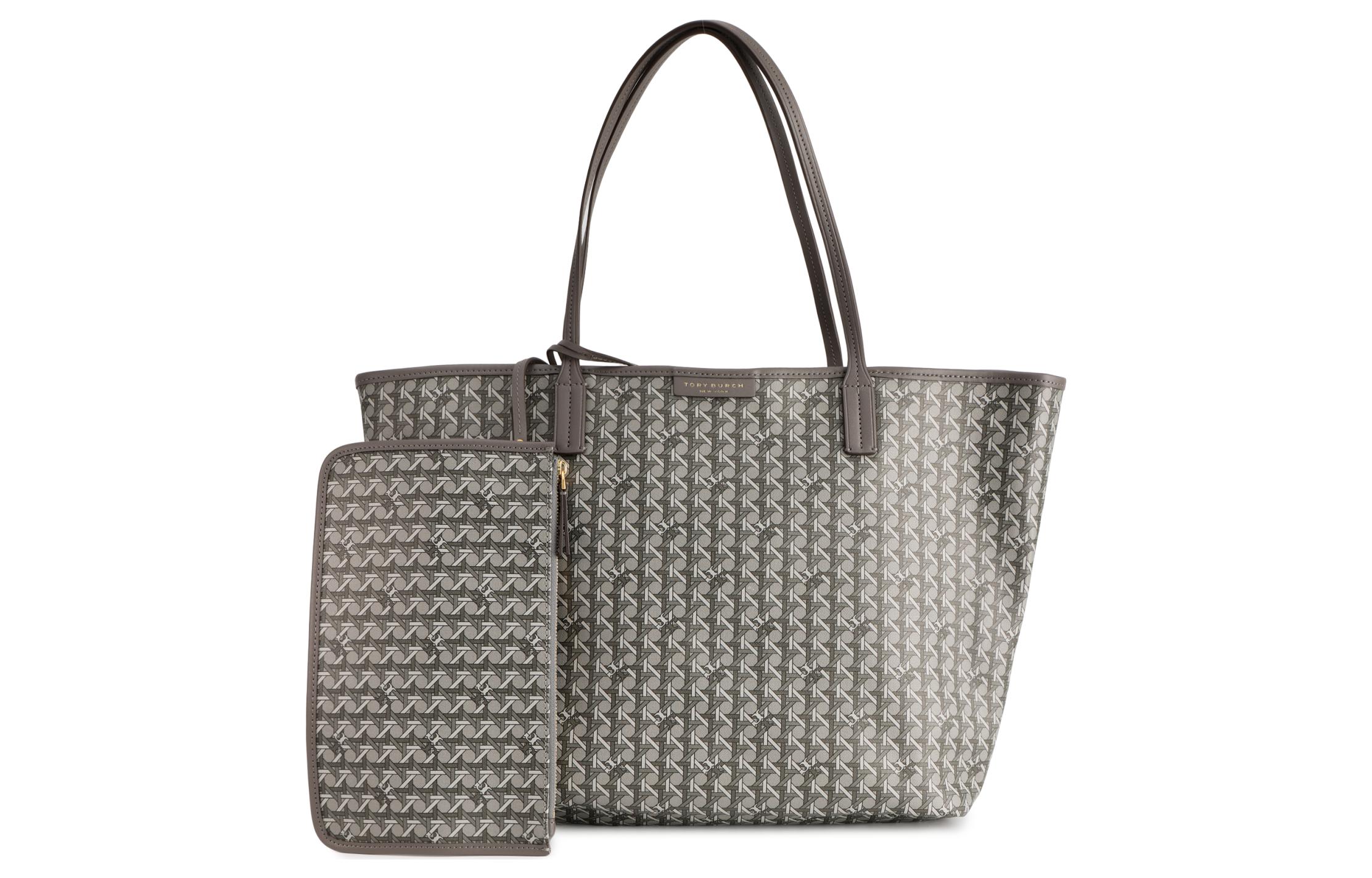 TORY BURCH Элегантная сумка тоут из прочной ткани графитового оттенка